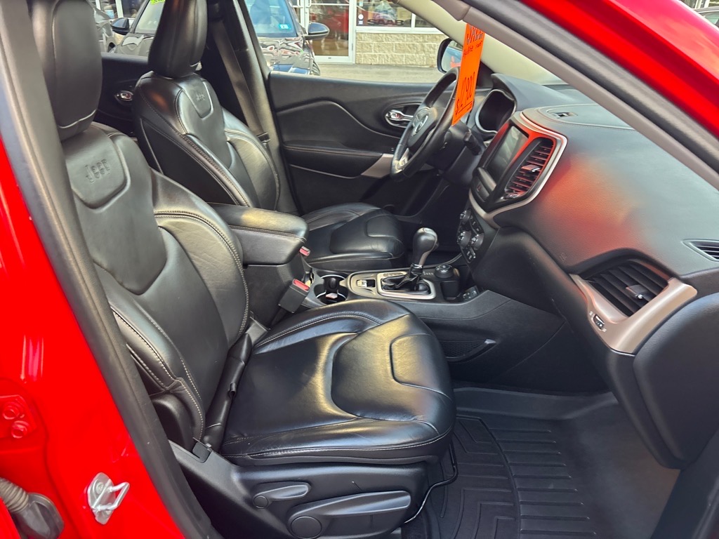 ONE OWNER JEEP CHEROKEE HIGH ALTITUDE 4X4- AUTOMATIC, 4 CYLINDER, HEATED LEATHER SEATS, HEATED STEERING WHEEL, POWER DRIVER SEAT, REMOTE STARTER, 8.4 TOUCHSCREEN RADIO, NAVIGATION, BACKUP CAMERA, GLOSS BLACK ALLOY WHEELS.