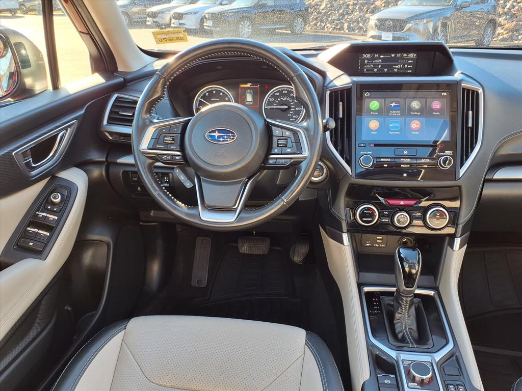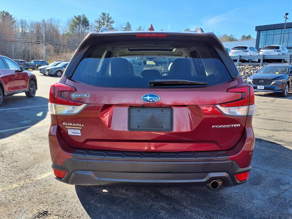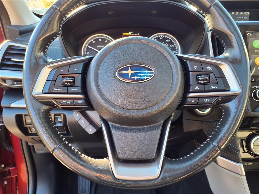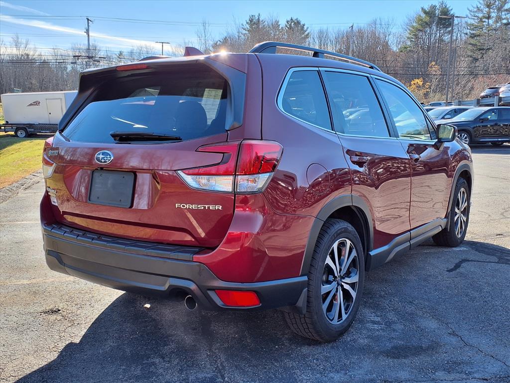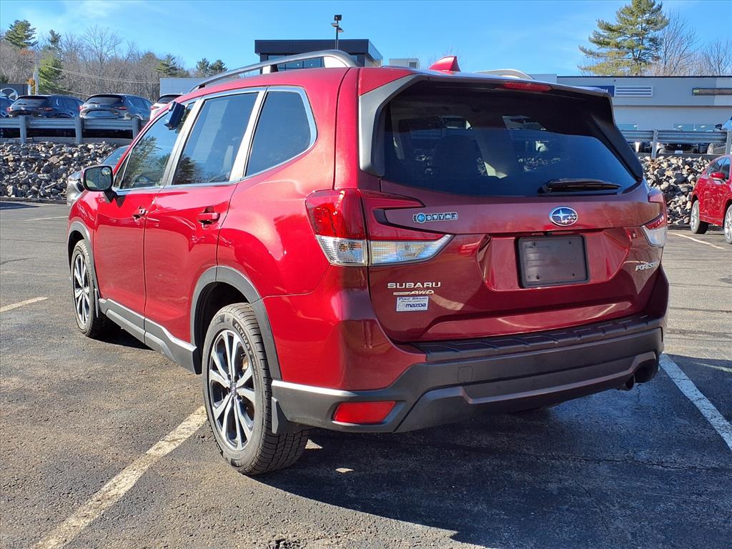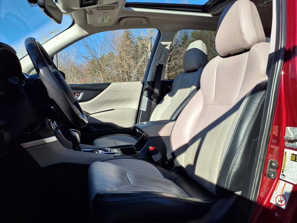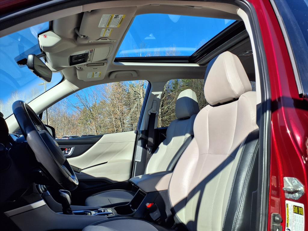 Clean CARFAX. Crimson Red Pearl 2019 Subaru Forester Limited AWD Lineartronic CVT 2.5L 4-Cylinder DOHC 16V VVT 3.70 Axle Ratio, 4-Wheel Disc Brakes, 6 Speakers, ABS brakes, Air Conditioning, Alloy wheels, AM/FM radio: SiriusXM, Auto High-beam Headlights, Automatic temperature control, Brake assist, Bumpers: body-color, CD player, Driver door bin, Driver vanity mirror, Dual front impact airbags, Dual front side impact airbags, Electronic Stability Control, Emergency communication system: STARLINK Safety and Security, Exterior Parking Camera Rear, Four wheel independent suspension, Front anti-roll bar, Front Bucket Seats, Front Center Armrest, Front dual zone A/C, Front fog lights, Front reading lights, Fully automatic headlights, Heated door mirrors, Heated Front Bucket Seats, Heated front seats, Illuminated entry, Knee airbag, Leather Shift Knob, Low tire pressure warning, Occupant sensing airbag, Outside temperature display, Overhead airbag, Overhead console, Panic alarm, Passenger door bin, Passenger vanity mirror, Perforated Leather-Trimmed Upholstery, Power door mirrors, Power driver seat, Power Liftgate, Power moonroof: Panoramic, Power steering, Power windows, Radio data system, Radio: Subaru Starlink 8.0 Multimedia Plus System, Rear anti-roll bar, Rear seat center armrest, Rear window defroster, Rear window wiper, Remote keyless entry, Roof rack: rails only, Security system, Speed control, Speed-sensing steering, Split folding rear seat, Spoiler, STARLINK/Apple CarPlay/Android Auto, Steering wheel mounted audio controls, Tachometer, Telescoping steering wheel, Tilt steering wheel, Traction control, Trip computer, Turn signal indicator mirrors, Variably intermittent wipers, and Wheels: 18 x 7.0J Black Machine Finish Alum Alloy.
