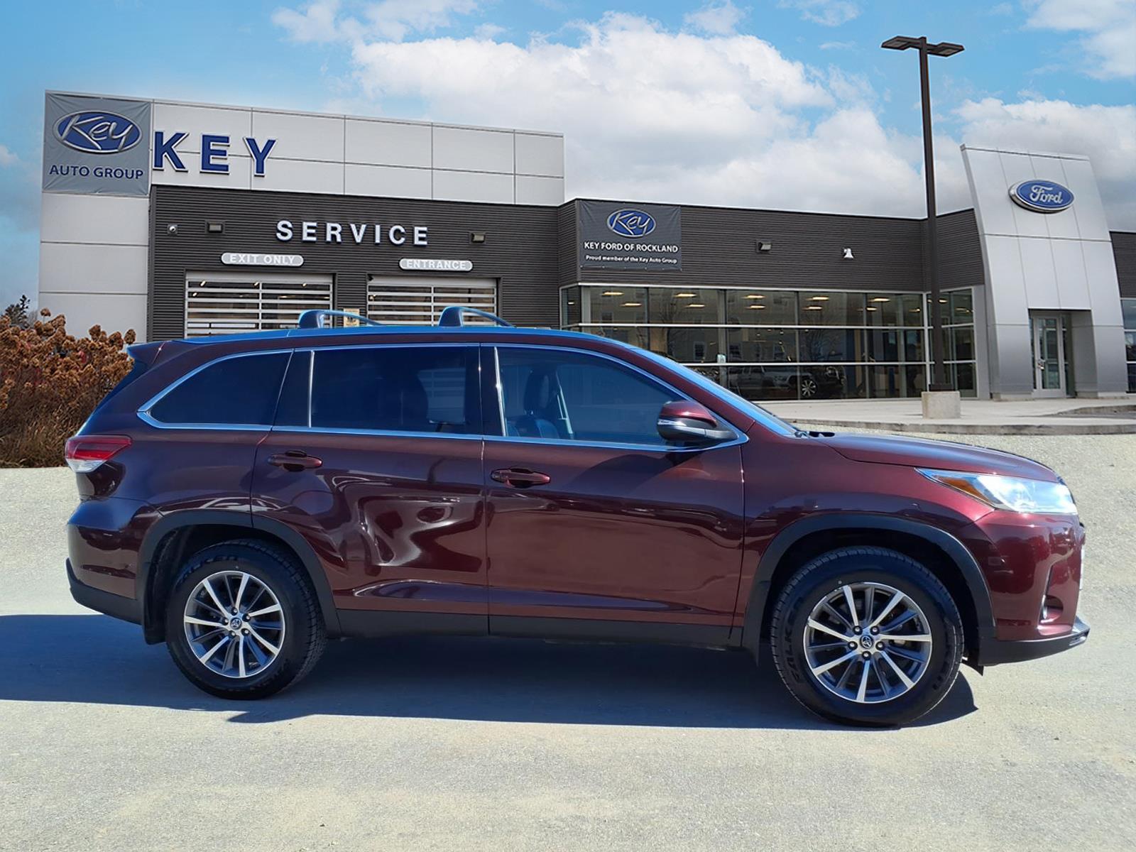 AWD. We make the car buying process very simple by displaying the lowest price on the window. We price our vehicles more aggressively than anyone else in the area. For that reason, were proud to display it on every vehicles window. We believe there is more to buying a vehicle than worrying about the price. For that reason, Key Auto has simplified that process for our customers. When we price a vehicle, we take the following into consideration: 1) market conditions, 2) what the area dealers are selling them for, 3) Kelly Blue Book* retail. This way, when you leave a Key Auto Dealership, youre confident youve received the absolute best deal. Please call 207-594-4466 or come to Key Ford of Rockland today. 2019 Toyota Highlander 4D Sport Utility Maroon 3.5L V6 8-Speed Automatic Electronic with ECT-i AWD Clean CARFAX. Key Ford of Rockland is proud to present you with another True Market Priced Pre-Owned Vehicle. Transparent Pricing Of $ 21498 !! This 2019 Toyota Highlander is loaded with the following Factory Options: AWD AWD, 3.003 Axle Ratio, 3rd row seats: split-bench, 4-Wheel Disc Brakes, ABS brakes, Air Conditioning, Alloy wheels, Auto High-beam Headlights, Brake assist, Bumpers: body-color, CD player, Delay-off headlights, Driver door bin, Driver vanity mirror, Dual front impact airbags, Dual front side impact airbags, Electronic Stability Control, Exterior Parking Camera Rear, Four wheel independent suspension, Front anti-roll bar, Front Bucket Seats, Front Center Armrest, Front reading lights, Fully automatic headlights, Heated door mirrors, Illuminated entry, Knee airbag, Low tire pressure warning, Occupant sensing airbag, Outside temperature display, Overhead airbag, Overhead console, Panic alarm, Passenger door bin, Passenger vanity mirror, Power door mirrors, Power steering, Power windows, Rear air conditioning, Rear anti-roll bar, Rear reading lights, Rear window defroster, Rear window wiper, Reclining 3rd row seat, Remote keyless entry, Speed control, Speed-sensing steering, Split folding rear seat, Spoiler, Steering wheel mounted audio controls, Tachometer, Telescoping steering wheel, Tilt steering wheel, Traction control, Trip computer, Turn signal indicator mirrors, and Variably intermittent wipers!! Awards: * 2019 KBB.com Best Resale Value Awards * 2019 KBB.com 12 Best Family Cars * 2019 KBB.com Brand Image Awards