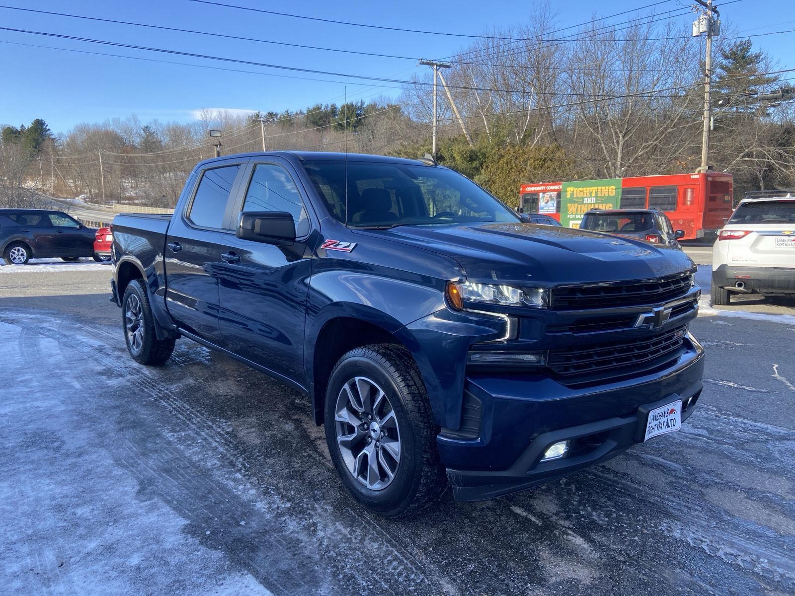 Check out this 2021 Chevrolet Silverado 1500 RST that just came in. This truck sure is sharp and drives great. It has the Z-71 off road package and is powered by a 5.3L 8 cylinder engine. Stop in or give us a call at 207-922-2277 if you are looking for sharp truck at a fraction of the price of a new one! nnEMISSIONS, FEDERAL REQUIREMENTS, ENGINE, 5.3L ECOTEC3 V8, TRANSMISSION, 8-SPEED AUTOMATIC, ELECTRONICALLY CONTROLLED, GVWR, 7100 LBS. (3221 KG), REAR AXLE, 3.23 RATIO, WHEELS, 20 X 9 (50.8 CM X 22.9 CM) PAINTED ALUMINUM, TIRES, 275/60R20SL ALL-TERRAIN, BLACKWALL, TIRE, SPARE 255/80R17SL ALL-SEASON, BLACKWALL, NORTHSKY BLUE METALLIC, SEATS, FRONT 40/20/40 SPLIT-BENCH, JET BLACK, CLOTH SEAT TRIM, AUDIO SYSTEM, CHEVROLET INFOTAINMENT 3 SYSTEM, Z71 OFF-ROAD AND PROTECTION PACKAGE, Z71 OFF-ROAD PACKAGE, BED PROTECTION PACKAGE, HILL DESCENT CONTROL, TRANSFER CASE, TWO-SPEED, COOLING, EXTERNAL ENGINE OIL COOLER, COOLING, AUXILIARY EXTERNAL TRANSMISSION OIL COOLER, AIR FILTER, HEAVY-DUTY, ALTERNATOR, 170 AMPS, TRAILER BRAKE CONTROLLER, INTEGRATED, SKID PLATES, EXHAUST, DUAL WITH POLISHED OUTLETS, CHEVYTEC SPRAY-ON BEDLINER, BLACK WITH CHEVROLET LOGO, WHEELHOUSE LINERS, REAR, LICENSE PLATE KIT, FRONT, LPO, ALL-WEATHER FLOOR LINERS, 1ST AND 2ND ROWSnn