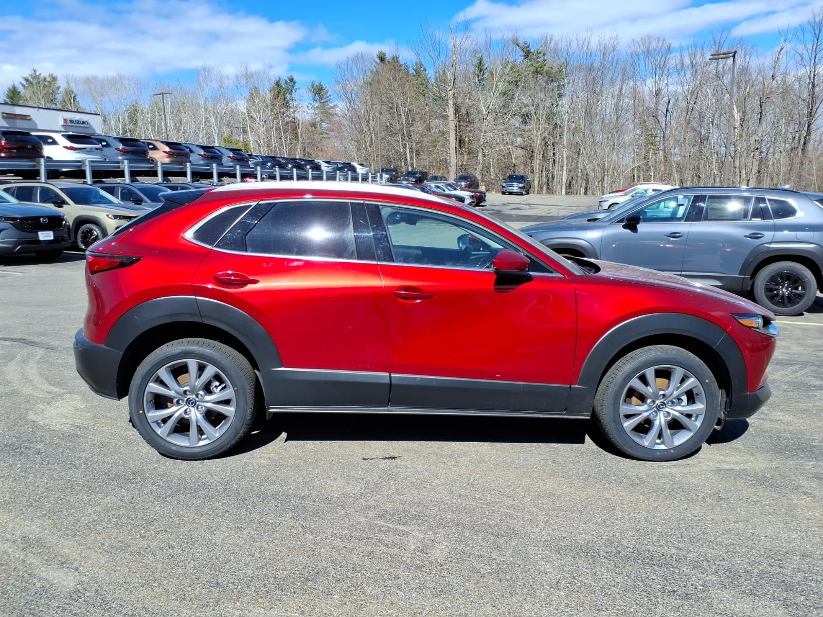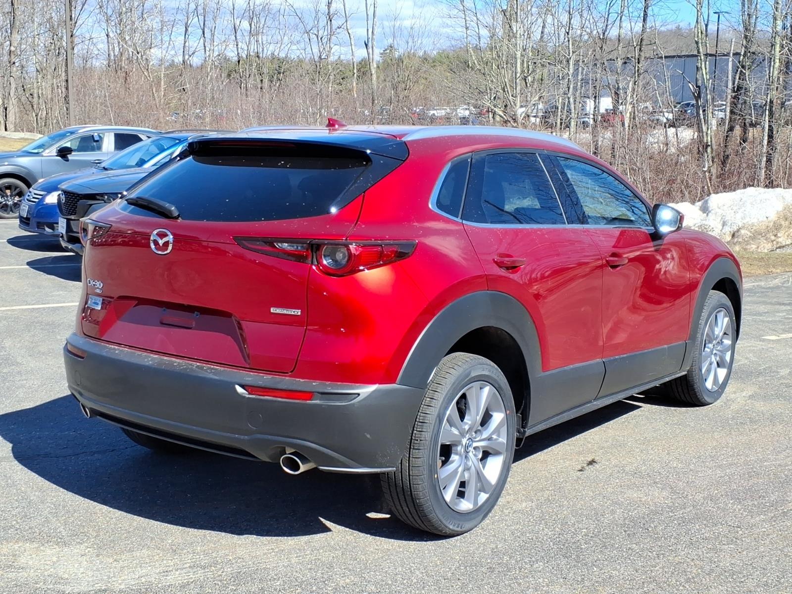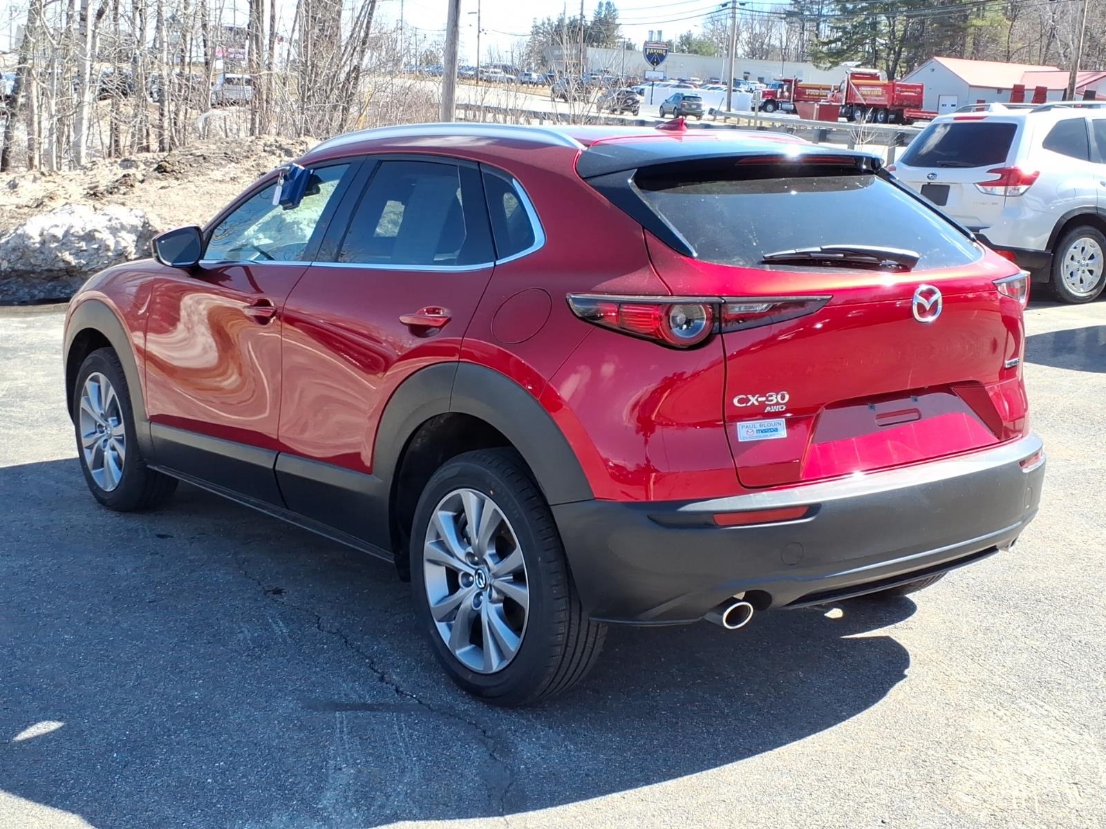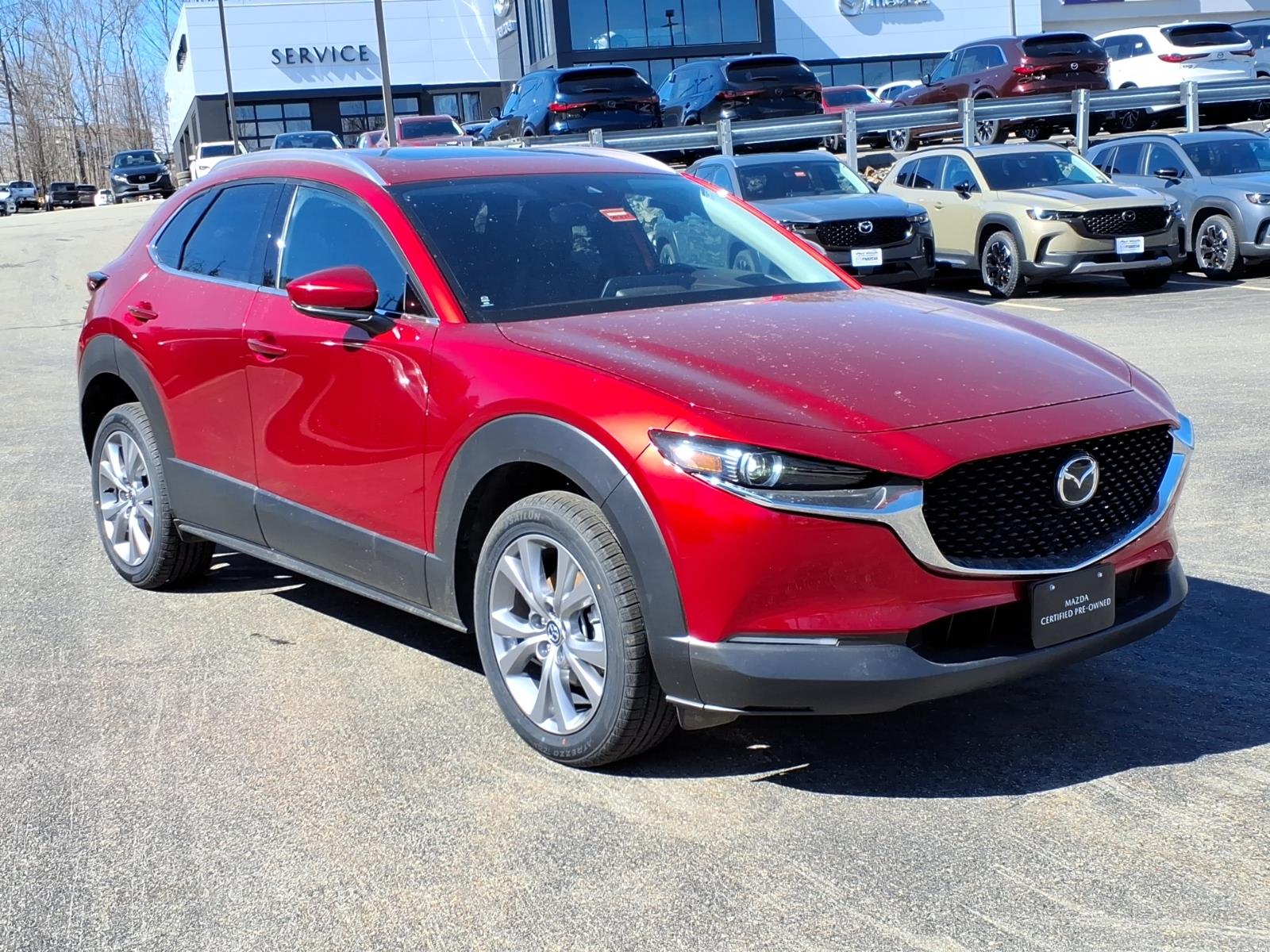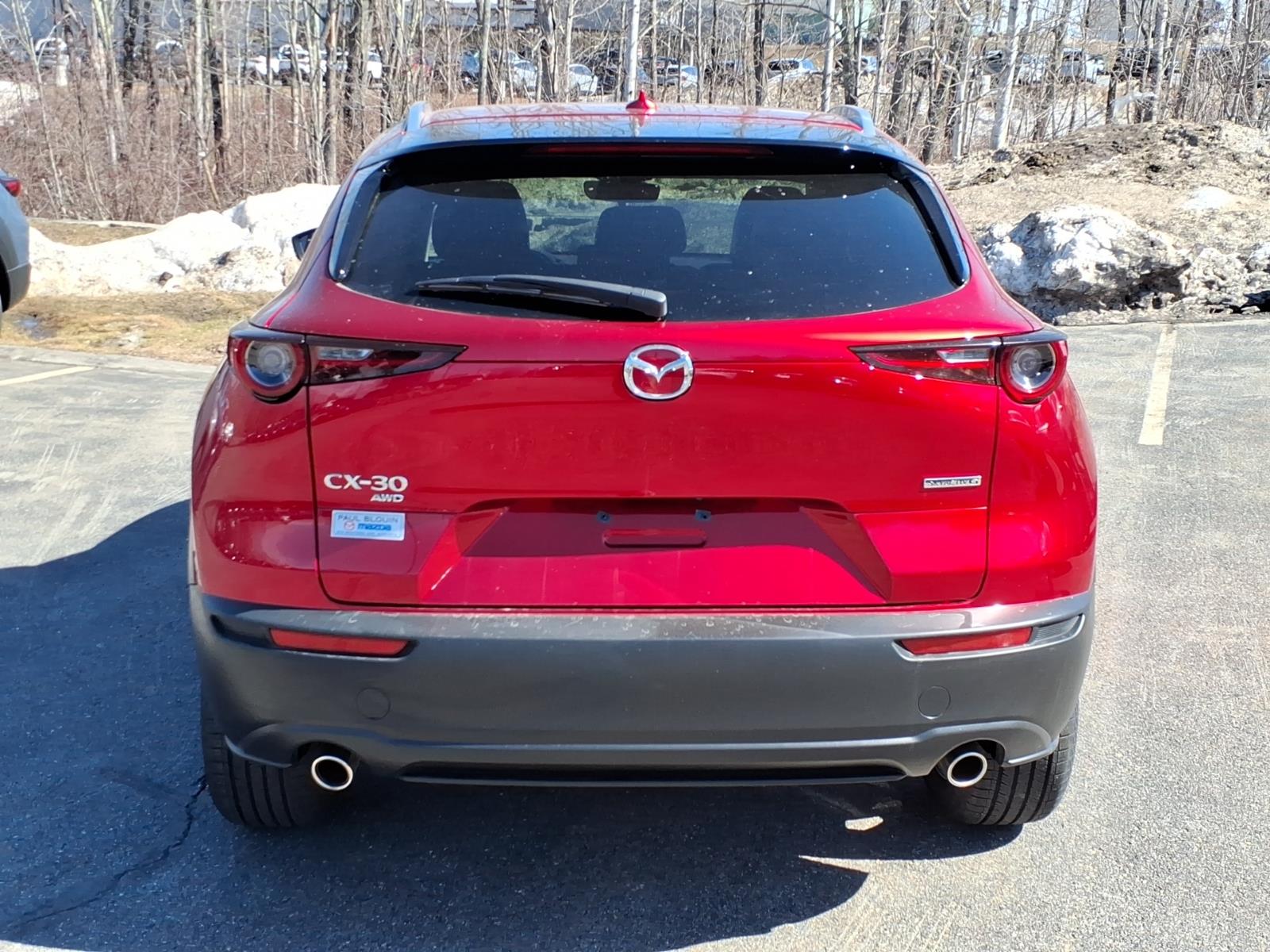 Recent Arrival! Clean CARFAX. Soul Red Crystal Metallic 2023 Mazda CX-30 2.5 S Premium Package AWD 6-Speed Automatic SKYACTIV 2.5L 4-Cylinder DOHC 16V 4-Wheel Disc Brakes, 4.095 Axle Ratio, 8 Speakers, ABS brakes, Air Conditioning, Alloy wheels, AppLink/Apple CarPlay and Android Auto, Auto High-beam Headlights, Automatic temperature control, Brake assist, Bumpers: body-color, Compass, Delay-off headlights, Driver door bin, Driver vanity mirror, Dual front impact airbags, Dual front side impact airbags, Electronic Stability Control, Emergency communication system: Mazda Connected Services (3-year complimentary trial included), Exterior Parking Camera Rear, Front anti-roll bar, Front Bucket Seats, Front Center Armrest, Front dual zone A/C, Front reading lights, Front wheel independent suspension, Fully automatic headlights, Heads-Up Display, Heated Front Bucket Seats, Heated front seats, Illuminated entry, Knee airbag, Leather Seat Trim, Leather Shift Knob, Leather steering wheel, Low tire pressure warning, MAZDA CONNECT Infotainment System, Memory seat, Navigation system: MAZDA CONNECT, Occupant sensing airbag, Outside temperature display, Overhead airbag, Overhead console, Panic alarm, Passenger door bin, Passenger vanity mirror, Power door mirrors, Power driver seat, Power Liftgate, Power moonroof, Power steering, Power windows, Radio data system, Radio: AM/FM/HD Audio System w/Mazda Navigation, Rain sensing wipers, Rear seat center armrest, Rear side impact airbag, Rear window defroster, Rear window wiper, Remote keyless entry, Soul Red Crystal Metallic Paint, Speed control, Speed-sensing steering, Split folding rear seat, Spoiler, Steering wheel mounted audio controls, Tachometer, Telescoping steering wheel, Tilt steering wheel, Traction control, Trip computer, Turn signal indicator mirrors, Variably intermittent wipers, and Wheels: 18 x 7J Aluminum Alloy.