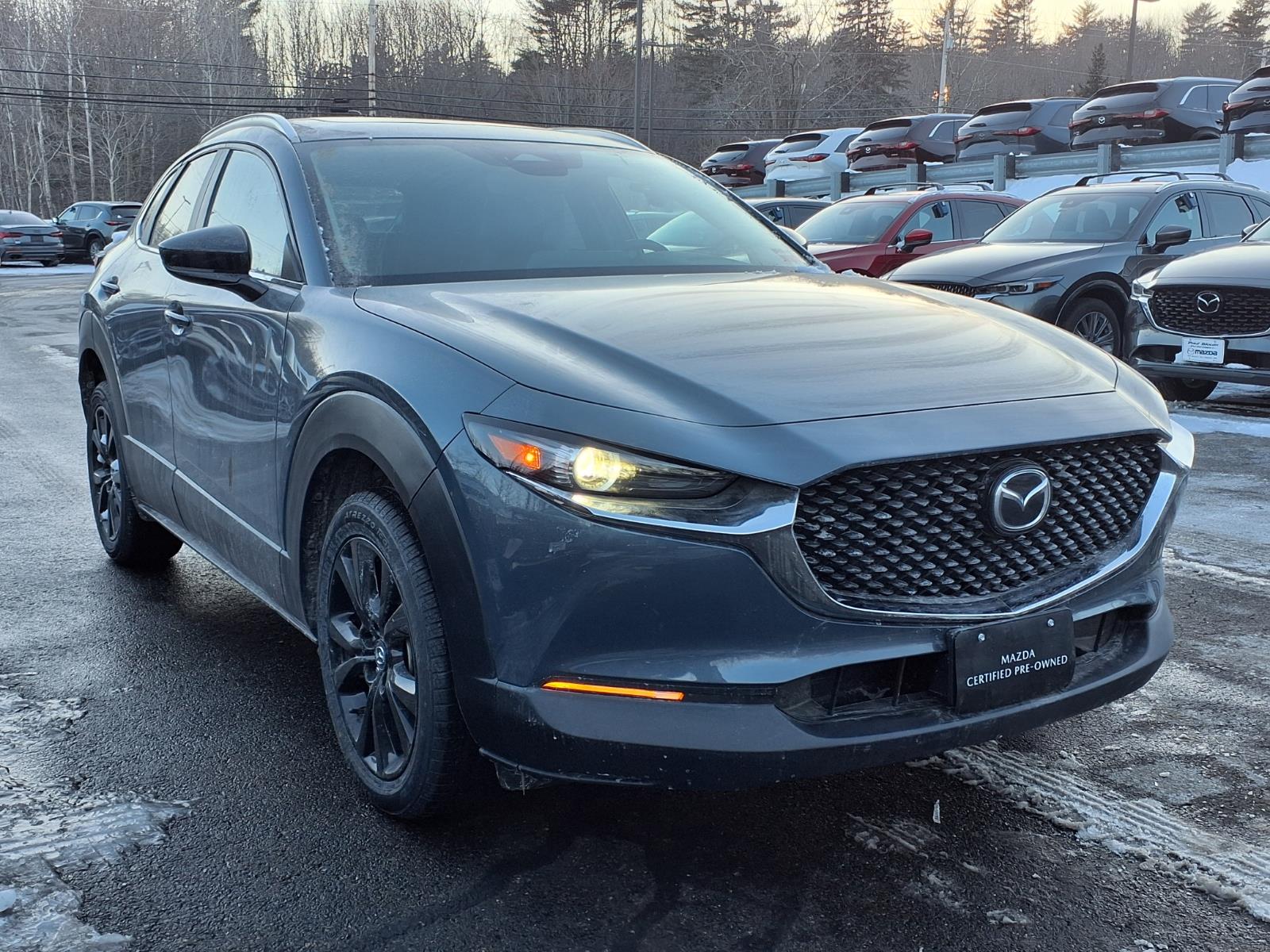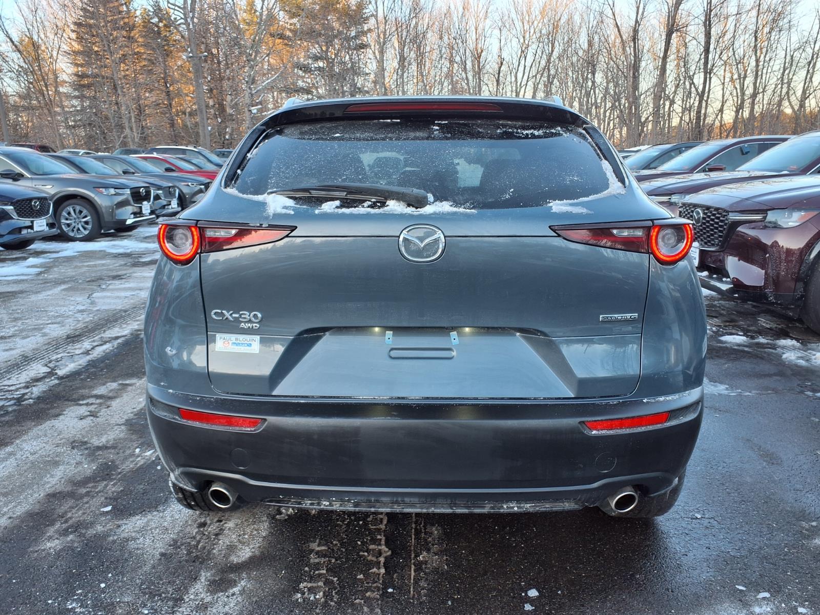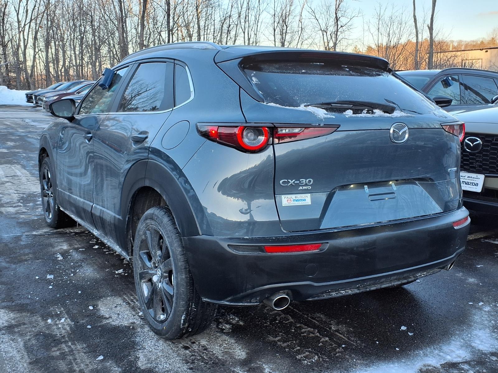 CARFAX One-Owner. Certified. Polymetal Gray Metallic 2024 Mazda CX-30 2.5 S Carbon Edition AWD 6-Speed Automatic SKYACTIV 2.5L 4-Cylinder DOHC 16V 4-Wheel Disc Brakes, 4.095 Axle Ratio, 8 Speakers, ABS brakes, Air Conditioning, Alloy wheels, AM/FM radio, AppLink/Apple CarPlay and Android Auto, Auto High-beam Headlights, Automatic temperature control, Black Lug Nuts & Black Wheel Locks, Brake assist, Bumpers: body-color, Compass, Delay-off headlights, Driver door bin, Driver vanity mirror, Dual front impact airbags, Dual front side impact airbags, Electronic Stability Control, Emergency communication system: Mazda Connected Services (3-year complimentary trial included), Exterior Parking Camera Rear, Front anti-roll bar, Front Bucket Seats, Front Center Armrest, Front dual zone A/C, Front reading lights, Front wheel independent suspension, Fully automatic headlights, Heated door mirrors, Heated Front Bucket Seats, Heated front seats, High Wall All-Weather Floor Mats, Illuminated entry, Knee airbag, Leather Seat Trim, Leather Shift Knob, Leather steering wheel, Low tire pressure warning, MAZDA CONNECT Infotainment System, Memory seat, Occupant sensing airbag, Outside temperature display, Overhead airbag, Overhead console, Panic alarm, Passenger door bin, Passenger vanity mirror, Power door mirrors, Power driver seat, Power moonroof, Power steering, Power windows, Radio data system, Radio: AM/FM/HD Audio System, Rain sensing wipers, Rear seat center armrest, Rear side impact airbag, Rear window defroster, Rear window wiper, Remote keyless entry, Speed control, Speed-sensing steering, Split folding rear seat, Spoiler, Steering wheel mounted audio controls, Tachometer, Telescoping steering wheel, Tilt steering wheel, Traction control, Trip computer, Turn signal indicator mirrors, Variably intermittent wipers, and Wheels: 18 x 7J Aluminum Alloy.