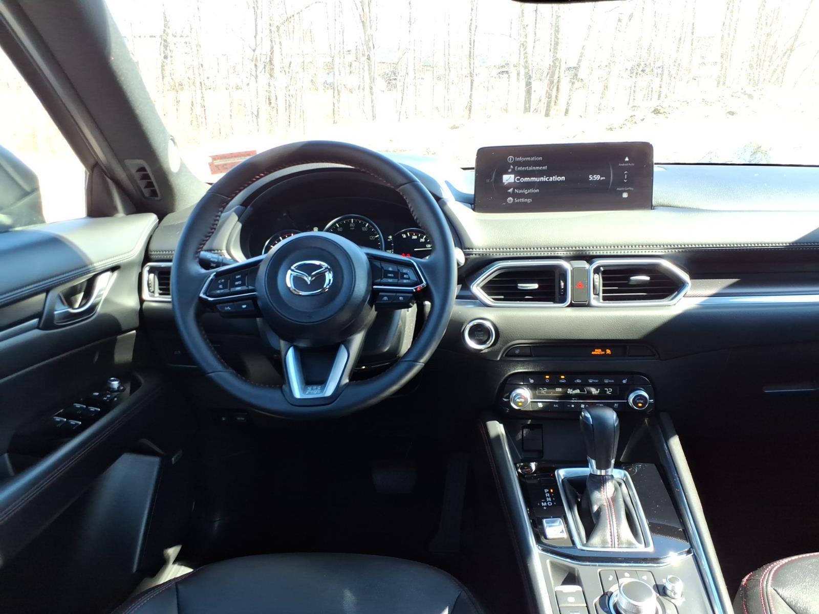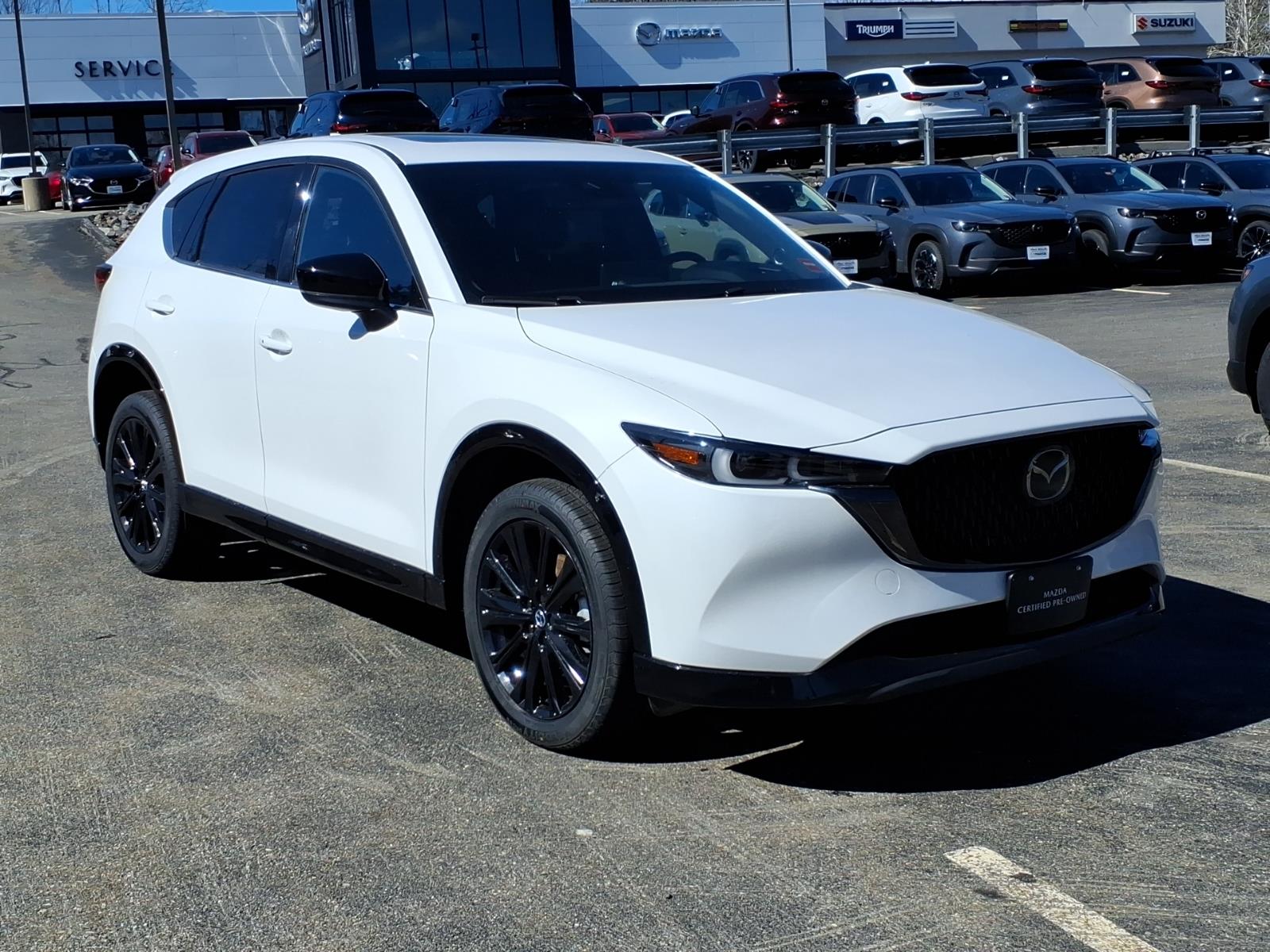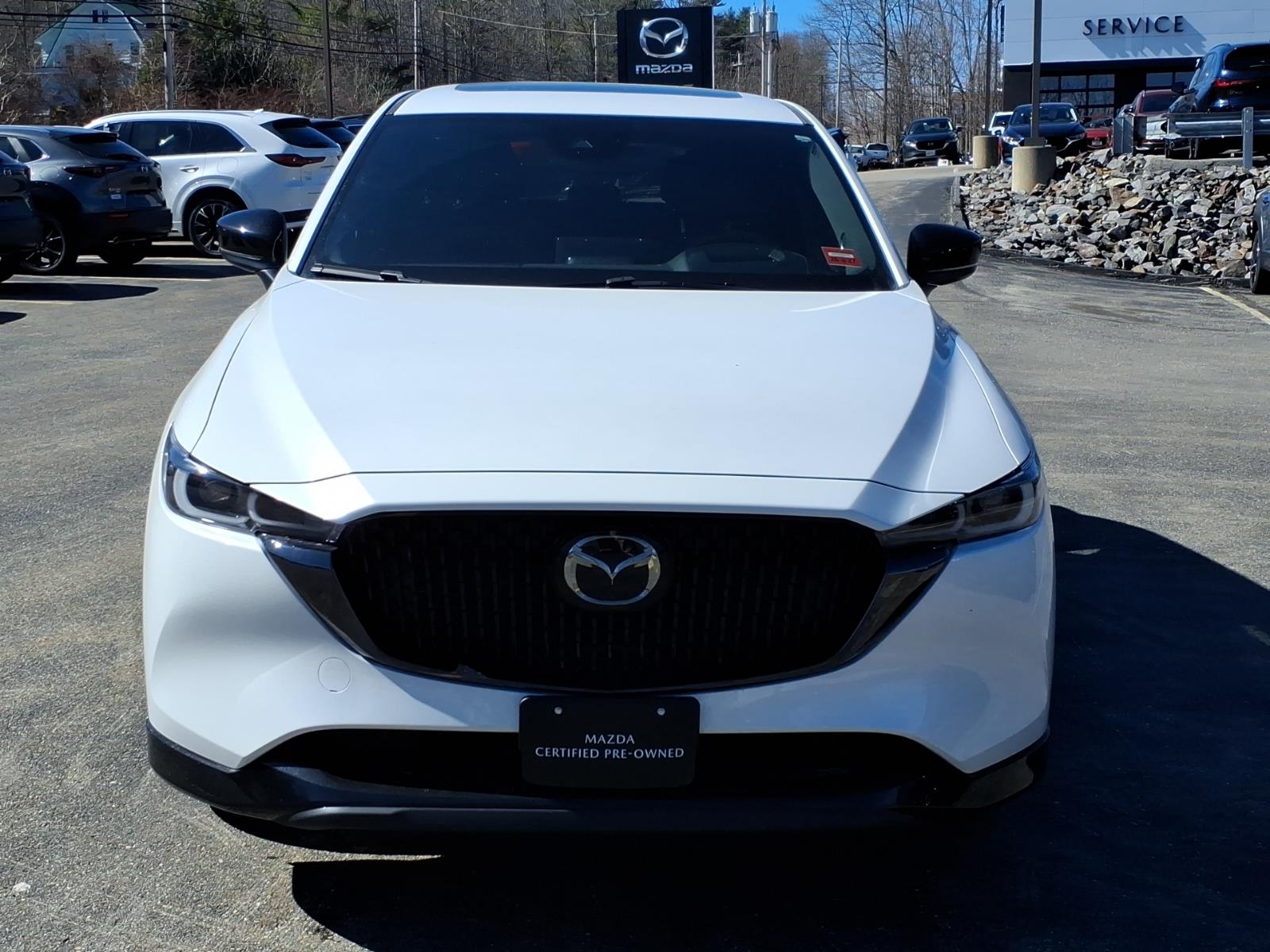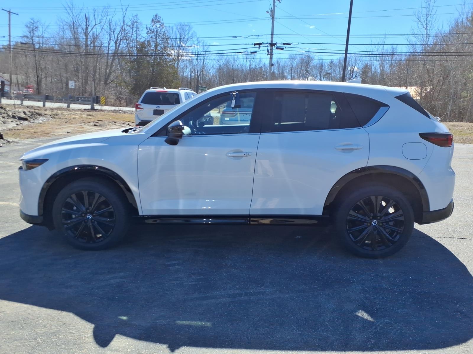Recent Arrival! Clean CARFAX. Certified. Rhodium White Metallic 2024 Mazda CX-5 2.5 Turbo Premium AWD 6-Speed Automatic 2.5L I4 10 Speakers, 4-Wheel Disc Brakes, 4.411 Axle Ratio, ABS brakes, Air Conditioning, All-Weather Floor Mats, Alloy wheels, AM/FM radio: SiriusXM, AppLink/Apple CarPlay and Android Auto, Auto High-beam Headlights, Auto-dimming Rear-View mirror, Automatic temperature control, Black Lug Nuts & Black Wheel Locks, Brake assist, Bumpers: body-color, Delay-off headlights, Driver door bin, Driver vanity mirror, Dual front impact airbags, Dual front side impact airbags, E911 Automatic Emergency Notification, Electronic Stability Control, Emergency communication system: MAZDA CONNECT, Exterior Parking Camera Rear, First Aid Kit, Four wheel independent suspension, Front anti-roll bar, Front Bucket Seats, Front Center Armrest w/Storage, Front dual zone A/C, Front reading lights, Fully automatic headlights, Garage door transmitter: HomeLink, Heads-Up Display, Heated door mirrors, Heated front seats, Heated rear seats, Heated steering wheel, Heated/Ventilated Front Bucket Seats, Illuminated entry, Infotainment System Voice Command, Leather Seat Trim, Leather Shift Knob, Leather steering wheel, Low tire pressure warning, Memory seat, Multifunction Commander Control, Occupant sensing airbag, Outside temperature display, Overhead airbag, Overhead console, Pandora, Panic alarm, Passenger door bin, Passenger vanity mirror, Power door mirrors, Power driver seat, Power Liftgate, Power moonroof, Power passenger seat, Power steering, Power windows, Radio Broadcast Data System Program Information, Radio data system, Radio: AM/FM/HD Audio System, Rain sensing wipers, Rear anti-roll bar, Rear reading lights, Rear seat center armrest, Rear window defroster, Rear window wiper, Remote keyless entry, Retractable Cargo Cover, Rhodium White Metallic Paint, Roof Rack Side Rails, SMS Text Msg Audio Delivery & Reply, Speed control, Speed-sensing steering, Split folding rear seat, Spoiler, Steering wheel mounted audio controls, Tachometer, Telescoping steering wheel, Tilt steering wheel, Traction control, Trip computer, Turn signal indicator mirrors, Variably intermittent wipers, Ventilated front seats, and Wheels: 19 x 7J Aluminum Alloy.
