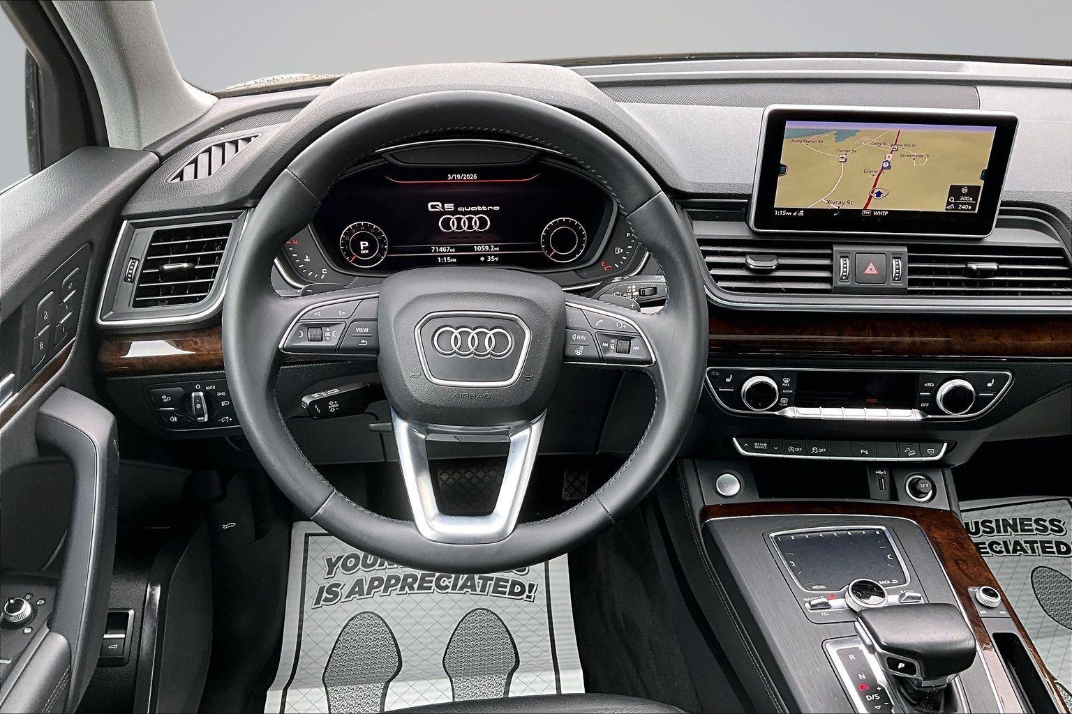 FRESH ARRIVAL CALL FOR RELEASE DATE!nnThis 2020 Audi Q5 Premium Plus offered in Brilliant Black will make a great addition to your family or business! Here are just a few features this vehicle has to offer:n nnBlack Optic Package ($1,300 value)20 Audi Sport 5-Arm-offroad Design WheelsMatte Black Roof RailsTitanium Black Exterior TrimCold Weather Package ($750 value)Heated Rear SeatsHeated Steering WheelAll-Weather Floor MatsConvenience PackageAudi Pre Sense RearAudi Side AssistDriver Seat MemoryAudi Advanced KeyAuto-Dimming Power Folding Exterior MirrorsSiriusXM All Access ServicePremium Plus Package ($6,650 value)Panoramic SunroofConvenience Plus PackageAudi Connect Prime and PlusAudi Virtual CockpitFront Door Sills with Aluminum InlayLED HeadlightsMMI Navigation Plus Radio with MMI TouchUSB Charge Ports For Rear SeatsConvenience PackageConvenience Plus PackageAudi Phone BoxParking System Plus (front/rear Acoustic Sensors)nnSafety and Security Forward collision mitigation - Forward thinking. You look away for just a second and suddenly the vehicle in front of you has stopped. That's when the forward collision mitigation system comes to life. When it senses an impending impact, it will activate a combination of features to help prevent or reduce the severity of an accident. Forward collision mitigation is always looking ahead. Pedestrian impact prevention - An extra step toward safety. Pedestrians don't always stop, look, and listen, but with Pedestrian Impact Prevention, your vehicle is equipped to better see them and avoid them. This system constantly monitors the road ahead to identify and track pedestrians. It projects that image to an interior display screen, AND should an impact become likely, Pedestrian impact prevention takes steps to avoid a collision. Rear camera - Watching your back! The rear camera helps you see obstacles and hazards you otherwise couldn't by showing enhanced images of what is behind you. The rear camera is an extra set of eyes that's both convenient and safe.Technology and Telematics Smart device mirroring - Smartphone, meet smart car. You can control your device through your vehicle's infotainment system. Smart device mirroring brings together safety and convenience by making it easier to find what you're looking for while keeping your eyes on the road. Mobile hotspot - WiFi on the fly. Connect your devices to the Internet through your vehicle's private mobile hotspot and take the internet wherever your journey takes you, without eating up your data allowance. Find the hotspot with mobile hotspot. This vehicle comes with a 30-day, 1250 mile 100% warranty that covers not only the complete list of state of Maine inspection standards but also engine & drive train as well. We also offer extended warranties for an additional fee. nnPlease call 207-753-0033 and speak with Dan, Ryan or Chris for further details or email us at sales@lakecityexports.com. nnAlso ask us about our AMAZING NEW GAP program! Buy Gap Coverage through us and if your vehicle becomes a total loss, we will give you $1000 towards the purchase of a new vehicle here at Lake City Exports! DISCLAIMER: Vehicle may or may not have equipment/options listed due to the fact that it is computer generated when VIN # is entered into the system and is listed with ALL options available within that package but this does not actually mean this vehicle may be equipped with it.