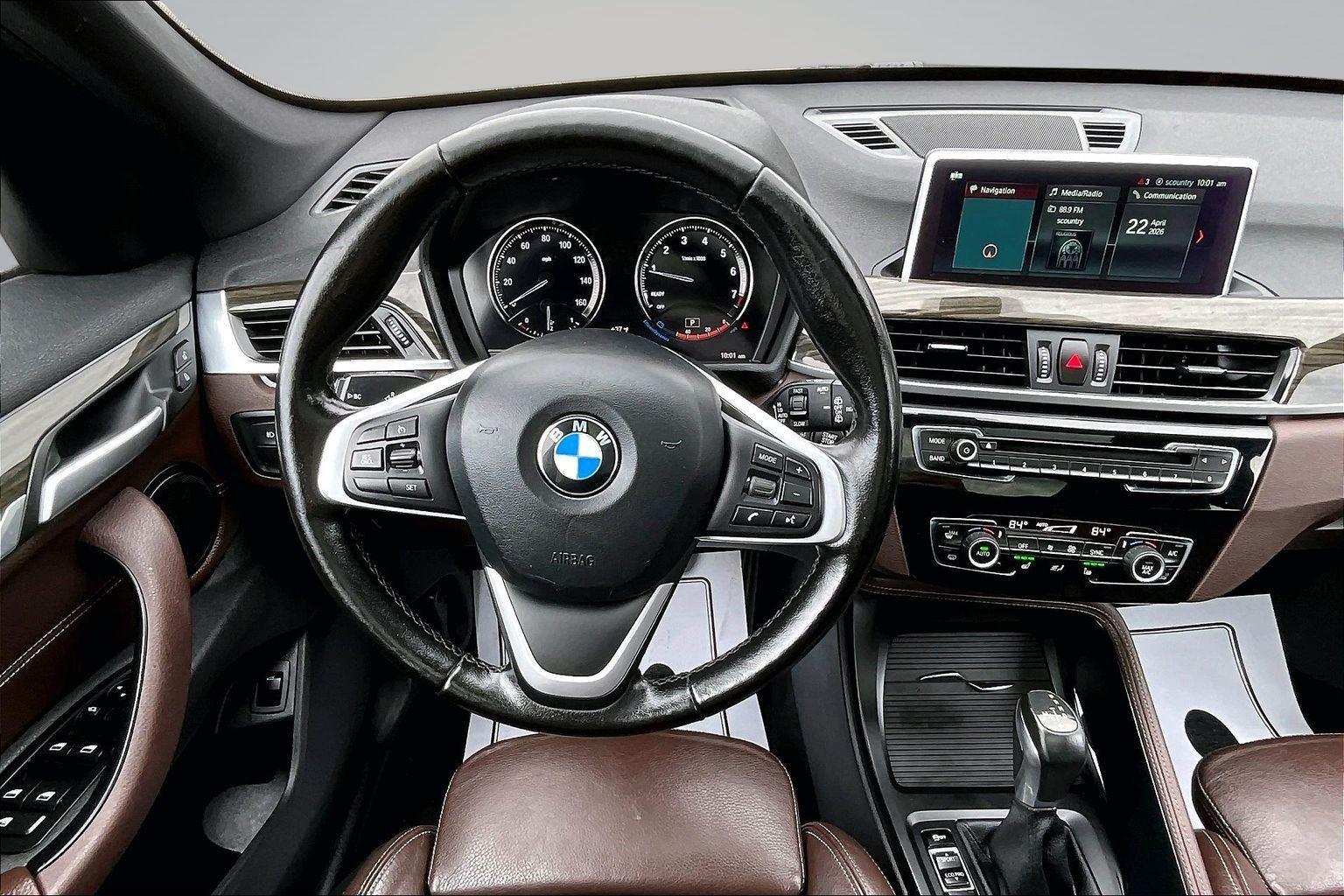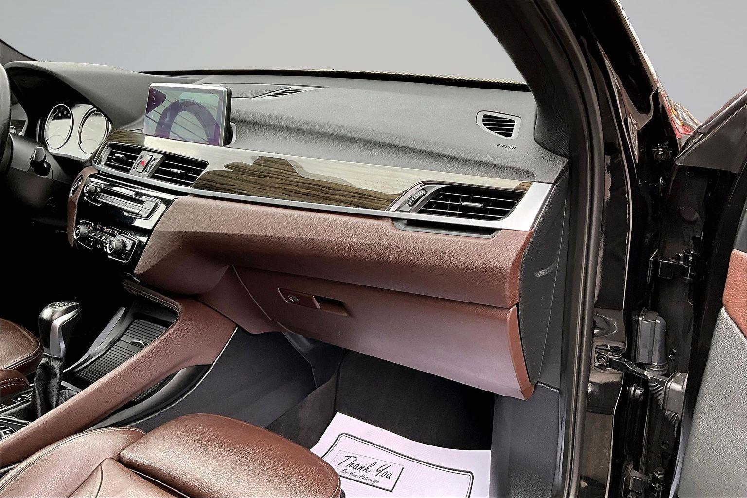 FRESH ARRIVAL CALL FOR RELEASE DATE!nnThis 2018 BMW X1 xDrive28i offered in Jet Black will make a great addition to your family or business! Here are just a few features this vehicle has to offer:nConvenience Package ($2,500 value)Power-Folding MirrorsUniversal Garage-Door OpenerComfort Access Keyless EntryPanoramic MoonroofAuto-Dimming Interior and Driver Exterior MirrorsLumbar SupportAmbient LightingSiriusXM Satellite RadioLuxury Package ($1,550 value)Fine-Wood Oak Grain Trim with Pearl Chrome AccentDakota Leather UpholsteryPremium Package ($3,300 value)Heated Steering WheelHeated Front SeatsLED Headlights with Cornering LightsHead-Up DisplayAdvanced Real-Time Traffic InformationRemote ServicesNavigation with Touchpad ControllernConvenience Cruise control with steering wheel mounted controls. Set it and forget it. Road trips used to be stressful, until cruise control set the pace. Simply set the desired speed using the steering wheel mounted controls and it will maintain that speed without driver intervention. This can help minimize driver fatigue and improve overall fuel economy. Resting your right foot is right at your fingertips thanks to cruise control with steering wheel mounted controls.Safety and Security Rear camera - Watching your back! The rear camera helps you see obstacles and hazards you otherwise couldn't by showing enhanced images of what is behind you. The rear camera is an extra set of eyes that's both convenient and safe. Head-up display - Keep your head up! You don't have to take your eyes off of the road to get information from your dashboard anymore. With head-up display, important driving information - like speed and RPM's - displays on your windshield in your line of sight. Because when you're driving, the most important information lies on the road ahead. Keep your eyes on the road with head-up display. Brake assist - Stop right there. Something jumps out into the middle of the road and you need to stop now! With brake assist, you will. It uses the speed of the brake pedal's travel to sense panic braking, then applies all available power to boost your stopping power. Brake assist can stop the accident before it is one.Technology and Telematics Selective Internet access - a more focused delivery. Selective internet access allows you to tailor the features for your feed, such as sports scores, local news, or current weather. When it comes to getting what you want, selective internet access is a net gain. This vehicle comes with a 30-day, 1250 mile 100% warranty that covers not only the complete list of state of Maine inspection standards but also engine & drive train as well. We also offer extended warranties for an additional fee. nnPlease call 207-753-0033 and speak with Dan, Ryan or Chris for further details or email us at sales@lakecityexports.com. nnAlso ask us about our AMAZING NEW GAP program! Buy Gap Coverage through us and if your vehicle becomes a total loss, we will give you $1000 towards the purchase of a new vehicle here at Lake City Exports! DISCLAIMER: Vehicle may or may not have equipment/options listed due to the fact that it is computer generated when VIN # is entered into the system and is listed with ALL options available within that package but this does not actually mean this vehicle may be equipped with it.