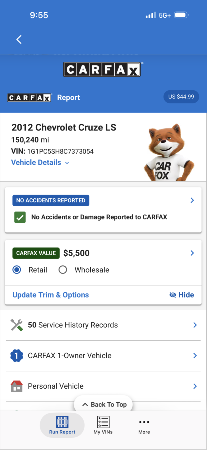 12 Chevy Cruze one owner 4 cylinder automatic with 151K. Runs and drives great, needs nothing. New inspection, 30 day plate and 30 day warranty. 4500 plus tax and title. No in house financing