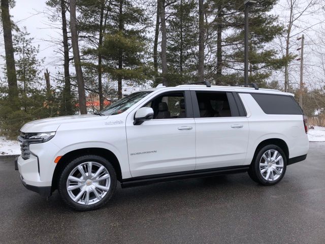 THIS VEHICLE IS LOCATED AT *BERLIN CITY LEXUS* - PLEASE ASK FOR *LEXUS SALES*, NO ACCIDENTS REPORTED, ONE OWNER, ALL WHEEL DRIVE / 4X4, BLUETOOTH, BACK UP CAMERA, Suburban High Country 4WD, 4D Sport Utility, EcoTec3 6.2L V8, 10-Speed Automatic with Overdrive, 4WD, Iridescent Pearl Tricoat, Jet Black w/Leather Seating Surfaces, 12-Way Power Driver & Passenger Seat Adjusters, 15" Diagonal Multi-Color Head-Up Display, 1st & 2nd Row Color-Keyed Carpeted Floor Mats, 2 USB Data Ports, 2-Speed Active Electronic AutoTrac Transfer Case, 3rd Row 60/40 Power-Folding Split-Bench, Adaptive Cruise Control, Advanced Trailering Package, Advanced Trailering System, Air Ride Adaptive Suspension, Automatic Heated Steering Wheel, Bose 10-Speaker Surround w/CenterPoint, Bright Front & Rear Door Sill Plates, Chrome Door Handles w/Body-Color Strip, Color-Keyed Carpeting Floor Covering, Driver & Front Outboard Passenger Airbags, Dual Exhaust System, Dual-Pane Power Panoramic Sunroof, Enhanced Driver Information Center, Extra Capacity Cooling System, Floor Console w/Storage Area, Front & Rear Black Bowtie Emblems (LPO), Front & Rear Park Assist, Hands-Free Rear Power Programmable Liftgate, HD Radio, HD Surround Vision, Heated & Ventilated Driver & Front Passenger Seats, Heated 2nd Row Outboard Seats, Heated door mirrors, Heated Driver & Front Passenger Seats, Heated steering wheel, High Country Deluxe, Hill Descent Control, Hitch Guidance w/Hitch View, Infotainment Display, Inside Rearview Auto-Dimming Rear Camera Mirror, Integrated Trailer Brake Controller, Lane Change Alert w/Side Blind Zone Alert, Lane Keep Assist w/Lane Departure Warning, Leather-Wrapped Steering Wheel, LED Daytime Running Lamps, License Plate Front Mounting Package, Max Trailering Package, Memory Settings, Outside Heated Power-Adjustable Mirrors, Power Liftgate, Power Release 2nd Row Bucket Seats, Power Tilt & Telescopic Steering Column, Power-Retractable Assist Steps, Preferred Equipment Group 3LZ, Rear Camera Mirror Washer, Rear Cross Traffic Alert, Rear Pedestrian Alert, Remote keyless entry, Remote Start, Safety Alert Seat, Trailer Side Blind Zone Alert, Universal Home Remote, Wheels: 22" x 9" Sterling Silver Premium Painted.2021 Chevrolet Suburban High Country 4WD 4WD 10-Speed Automatic with Overdrive EcoTec3 6.2L V8 Iridescent Pearl Tricoat 14/19 City/Highway MPGThis vehicle is available exclusively at Berlin City Lexus. We offer a fully online purchasing experience, including FaceTime virtual appointments, in house financing and home delivery anywhere in New England. We work with all credit levels and a variety of financial situations. Quoted prices are subject to change without notice to correct errors or omissions. All figures are estimates only and are not guaranteed to be accurate. Used vehicle leasing is available on select models and requires a minimum credit score of 670. Lease terms typically range from 24 to 60 months, depending on the vehicle. We also offer new vehicle leasing through Lexus Financial Services, available for both prime and sub-prime credit levels. A dealer document processing fee of $799 is not included in the quoted price. Sales tax, title, registration, tag fees, and other government fees are also not included. Taxes are based on the state in which the vehicle is registered.