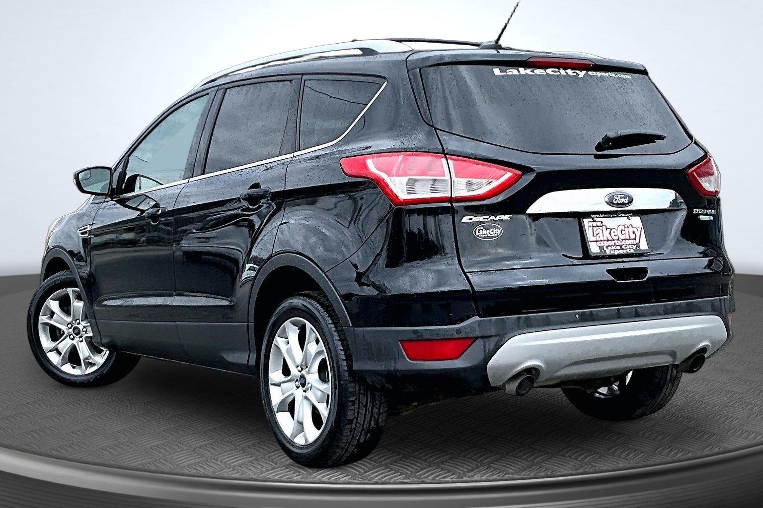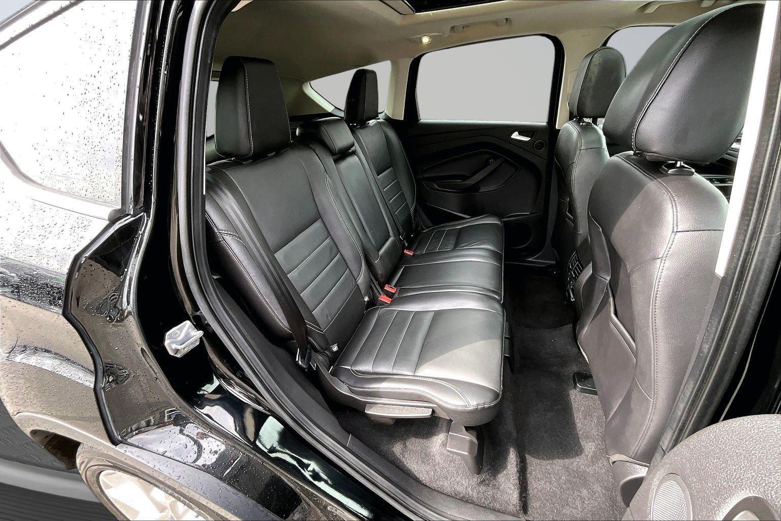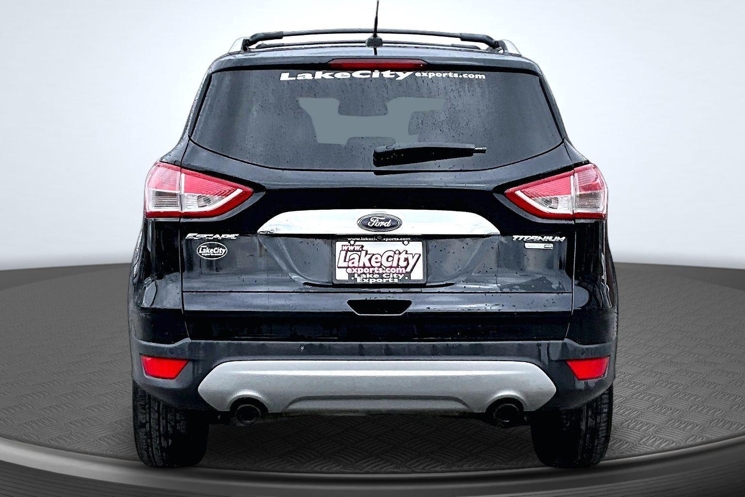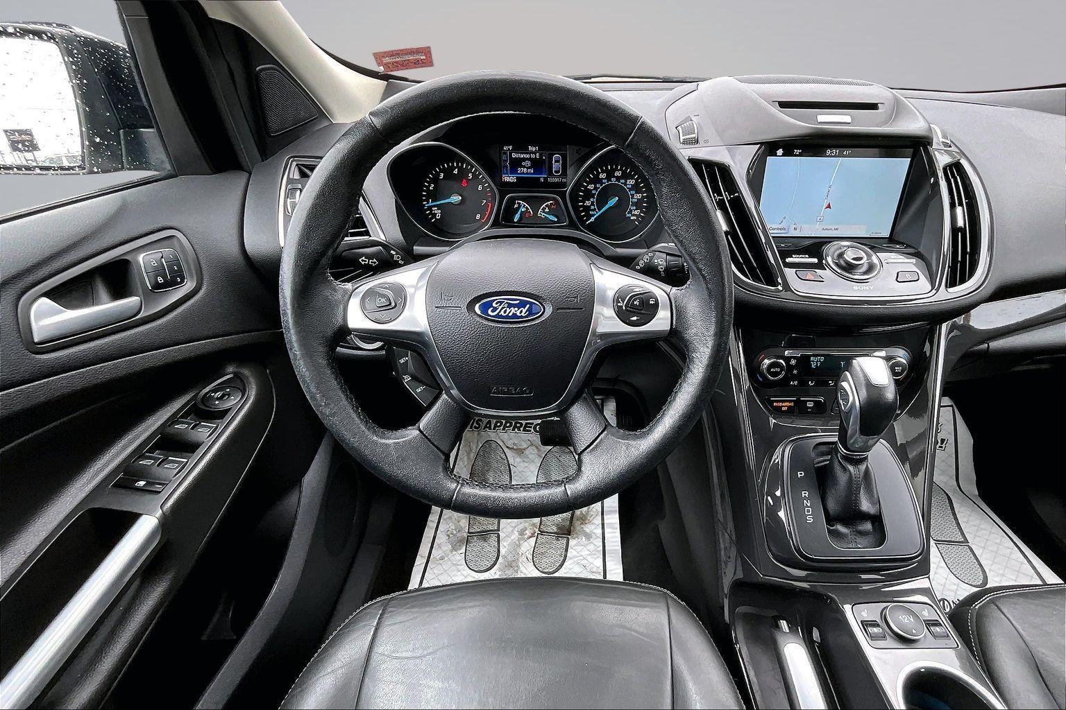 This 2016 Ford Escape Titanium offered in Shadow Black will make a great addition to your family or business! Here are just a few features this vehicle has to offer:nEquipment Group 300A6-Speed Automatic Transmission with SelectShift18 Sparkle Nickel Painted Aluminum WheelsHeated Leather-Trimmed Buckets with 60/40 Rear Seat1.6L EcoBoost Engine3.51 Axle Ratio4,760 lbs GVWRAM/FM Single CD/MP3 RadioCargo Area Protector ($90 value)Roof Rack Cross Bars ($145 value)Includes black roof rack crossbars.White Platinum Tri-Coat Metallic Paint ($595 value)Ruby Red Metallic Tinted Clearcoat Paint ($395 value)Power Panorama Roof ($1,495 value)All-Weather Floor Mats ($75 value)Includes front and rear heavy duty vinyl floor mats.SYNC 3 Voice Activated Navigation System ($795 value)Includes SYNC 3 voice activated navigation system with SiriusXM Traffic and Travel Link with 5 yr. subscription from vehicle sale date as recorded by dealer.nnConvenience Cruise control with steering wheel mounted controls. Set it and forget it. Road trips used to be stressful, until cruise control set the pace. Simply set the desired speed using the steering wheel mounted controls and it will maintain that speed without driver intervention. This can help minimize driver fatigue and improve overall fuel economy. Resting your right foot is right at your fingertips thanks to cruise control with steering wheel mounted controls. Power open and close liftgate - On-demand access. When your arms are full of cargo, the last thing you want to do is set it all down just to open the liftgate, then pick it all back up to load it in. By remotely opening and closing, power liftgate lets you skip straight to the loading. It also eliminates the awkward stretch to reach up for the liftgate to close it. Load and go with power open and close liftgate.Safety and Security Rear camera - Watching your back! The rear camera helps you see obstacles and hazards you otherwise couldn't by showing enhanced images of what is behind you. The rear camera is an extra set of eyes that's both convenient and safe. Brake assist - Stop right there. Something jumps out into the middle of the road and you need to stop now! With brake assist, you will. It uses the speed of the brake pedal's travel to sense panic braking, then applies all available power to boost your stopping power. Brake assist can stop the accident before it is one.Technology and Telematics Mobile hotspot - WiFi on the fly. Connect your devices to the Internet through your vehicle's private mobile hotspot and take the internet wherever your journey takes you, without eating up your data allowance. Find the hotspot with mobile hotspot.nThis vehicle comes with a State of Maine inspection sticker as well as a 30-day plate! nnWe also offer extended warranties for an additional fee. Please call 207-753-0033 and speak with Dan, Chris or Ryan for further details or email us at sales@lakecityexports.com. nnAlso ask us about our AMAZING NEW GAP program! Buy Gap Coverage through us and if your vehicle becomes a total loss, we will give you $1000 towards the purchase of a new vehicle here at Lake City Exports! nnDISCLAIMER: Vehicle may or may not have equipment/options listed due to the fact that it is computer generated when VIN # is entered into the system and is listed with ALL options available within that package but this does not actually mean this vehicle may be equipped with it.
