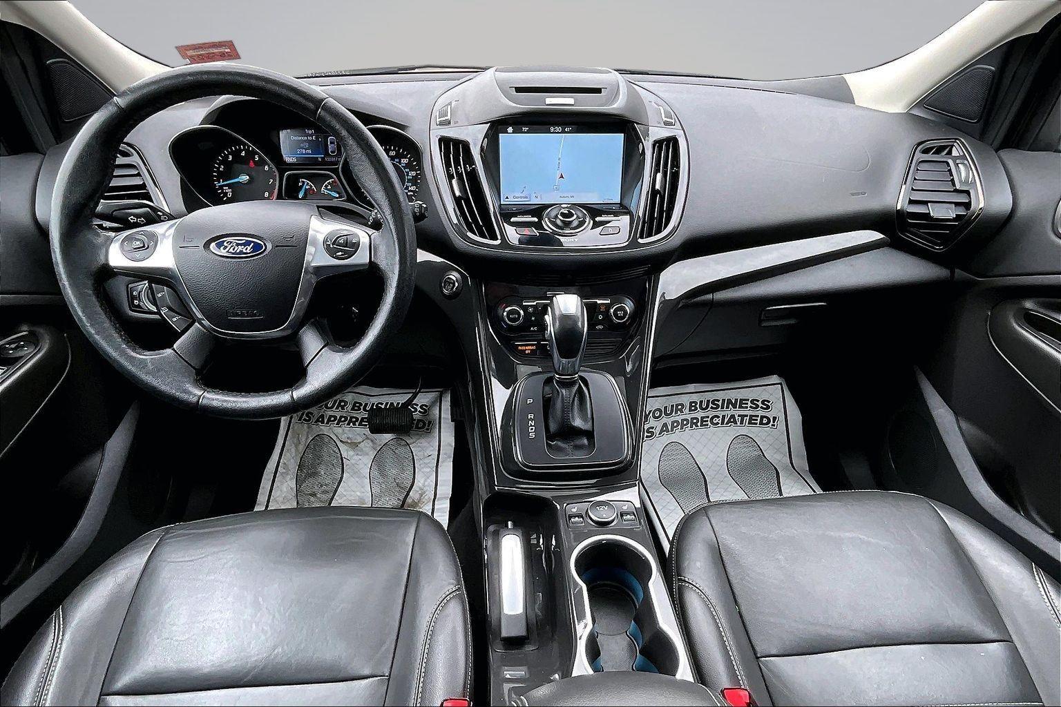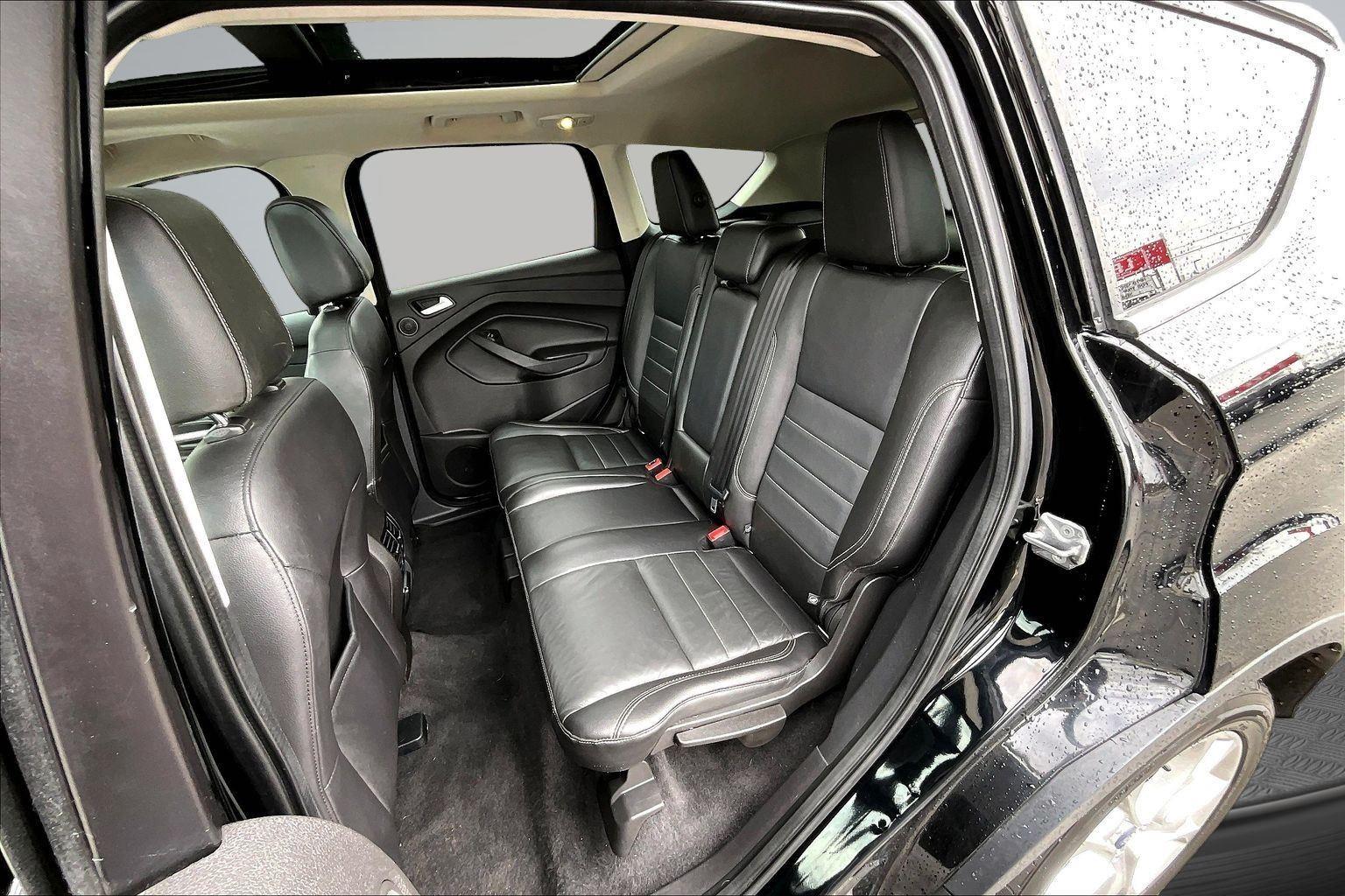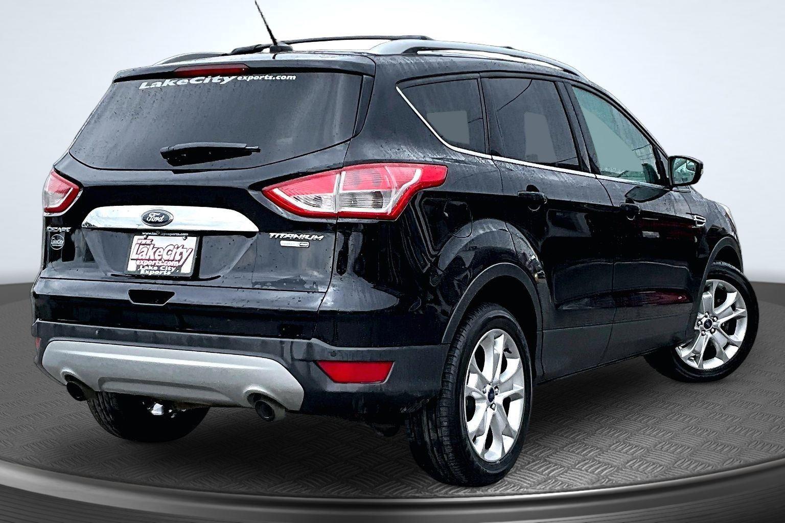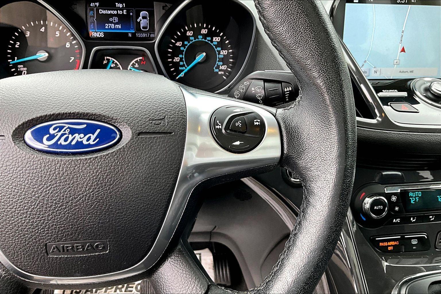 This 2016 Ford Escape Titanium offered in Shadow Black will make a great addition to your family or business! Here are just a few features this vehicle has to offer:nEquipment Group 300A6-Speed Automatic Transmission with SelectShift18 Sparkle Nickel Painted Aluminum WheelsHeated Leather-Trimmed Buckets with 60/40 Rear Seat1.6L EcoBoost Engine3.51 Axle Ratio4,760 lbs GVWRAM/FM Single CD/MP3 RadioCargo Area Protector ($90 value)Roof Rack Cross Bars ($145 value)Includes black roof rack crossbars.White Platinum Tri-Coat Metallic Paint ($595 value)Ruby Red Metallic Tinted Clearcoat Paint ($395 value)Power Panorama Roof ($1,495 value)All-Weather Floor Mats ($75 value)Includes front and rear heavy duty vinyl floor mats.SYNC 3 Voice Activated Navigation System ($795 value)Includes SYNC 3 voice activated navigation system with SiriusXM Traffic and Travel Link with 5 yr. subscription from vehicle sale date as recorded by dealer.nnConvenience Cruise control with steering wheel mounted controls. Set it and forget it. Road trips used to be stressful, until cruise control set the pace. Simply set the desired speed using the steering wheel mounted controls and it will maintain that speed without driver intervention. This can help minimize driver fatigue and improve overall fuel economy. Resting your right foot is right at your fingertips thanks to cruise control with steering wheel mounted controls. Power open and close liftgate - On-demand access. When your arms are full of cargo, the last thing you want to do is set it all down just to open the liftgate, then pick it all back up to load it in. By remotely opening and closing, power liftgate lets you skip straight to the loading. It also eliminates the awkward stretch to reach up for the liftgate to close it. Load and go with power open and close liftgate.Safety and Security Rear camera - Watching your back! The rear camera helps you see obstacles and hazards you otherwise couldn't by showing enhanced images of what is behind you. The rear camera is an extra set of eyes that's both convenient and safe. Brake assist - Stop right there. Something jumps out into the middle of the road and you need to stop now! With brake assist, you will. It uses the speed of the brake pedal's travel to sense panic braking, then applies all available power to boost your stopping power. Brake assist can stop the accident before it is one.Technology and Telematics Mobile hotspot - WiFi on the fly. Connect your devices to the Internet through your vehicle's private mobile hotspot and take the internet wherever your journey takes you, without eating up your data allowance. Find the hotspot with mobile hotspot.nThis vehicle comes with a State of Maine inspection sticker as well as a 30-day plate! nnWe also offer extended warranties for an additional fee. Please call 207-753-0033 and speak with Dan, Chris or Ryan for further details or email us at sales@lakecityexports.com. nnAlso ask us about our AMAZING NEW GAP program! Buy Gap Coverage through us and if your vehicle becomes a total loss, we will give you $1000 towards the purchase of a new vehicle here at Lake City Exports! nnDISCLAIMER: Vehicle may or may not have equipment/options listed due to the fact that it is computer generated when VIN # is entered into the system and is listed with ALL options available within that package but this does not actually mean this vehicle may be equipped with it.