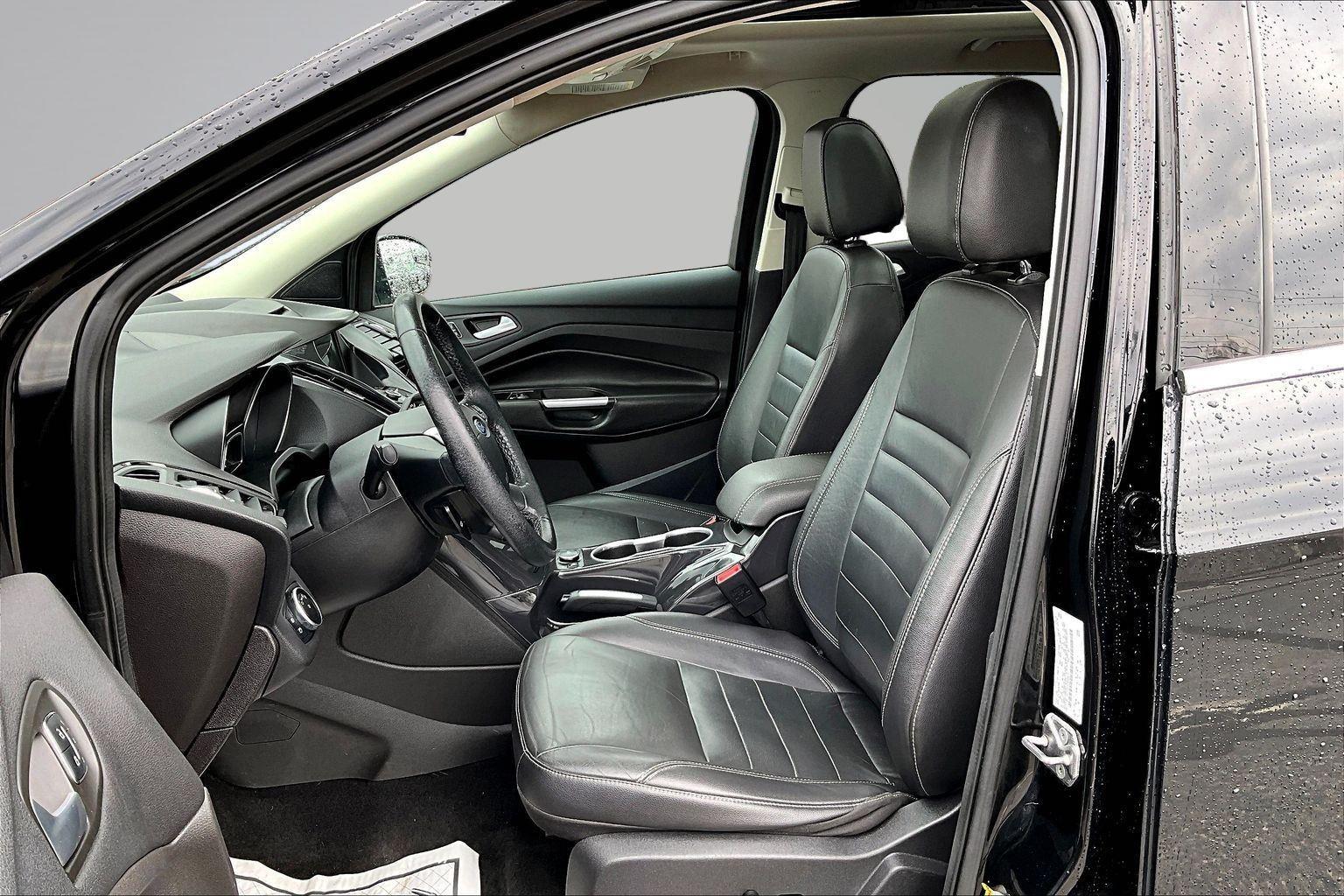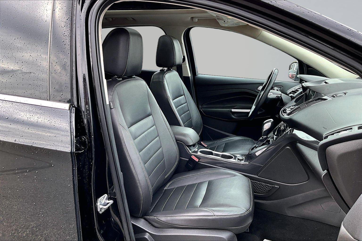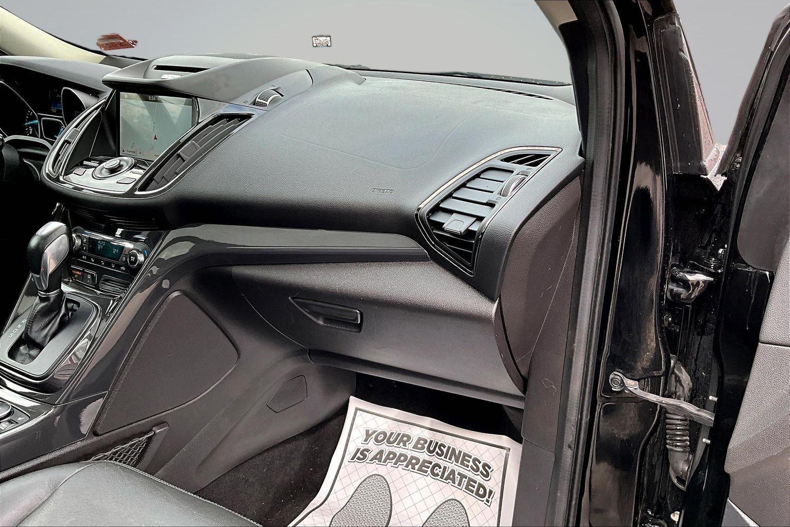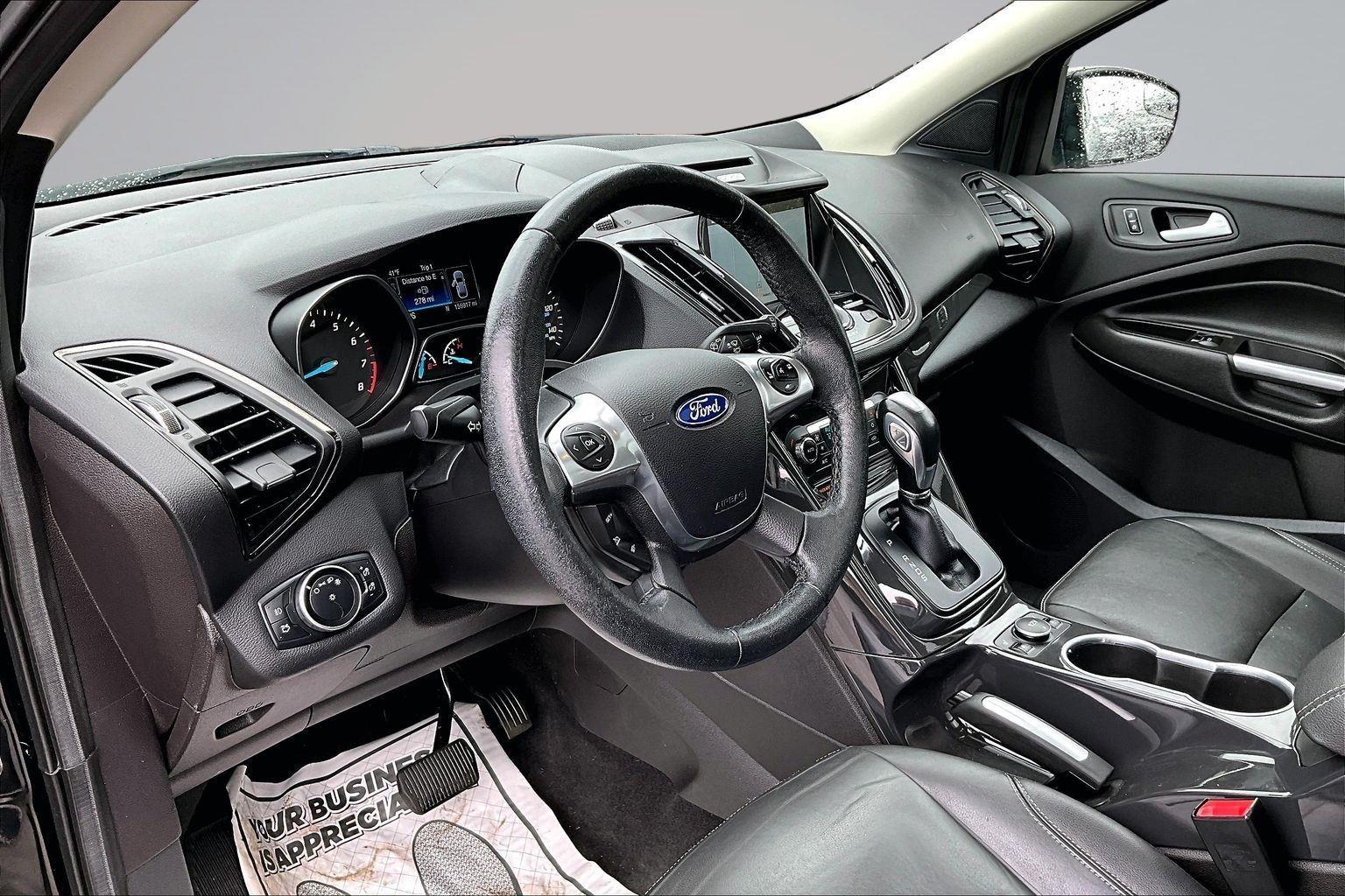 This 2016 Ford Escape Titanium offered in Shadow Black will make a great addition to your family or business! Here are just a few features this vehicle has to offer:nEquipment Group 300A6-Speed Automatic Transmission with SelectShift18 Sparkle Nickel Painted Aluminum WheelsHeated Leather-Trimmed Buckets with 60/40 Rear Seat1.6L EcoBoost Engine3.51 Axle Ratio4,760 lbs GVWRAM/FM Single CD/MP3 RadioCargo Area Protector ($90 value)Roof Rack Cross Bars ($145 value)Includes black roof rack crossbars.White Platinum Tri-Coat Metallic Paint ($595 value)Ruby Red Metallic Tinted Clearcoat Paint ($395 value)Power Panorama Roof ($1,495 value)All-Weather Floor Mats ($75 value)Includes front and rear heavy duty vinyl floor mats.SYNC 3 Voice Activated Navigation System ($795 value)Includes SYNC 3 voice activated navigation system with SiriusXM Traffic and Travel Link with 5 yr. subscription from vehicle sale date as recorded by dealer.nnConvenience Cruise control with steering wheel mounted controls. Set it and forget it. Road trips used to be stressful, until cruise control set the pace. Simply set the desired speed using the steering wheel mounted controls and it will maintain that speed without driver intervention. This can help minimize driver fatigue and improve overall fuel economy. Resting your right foot is right at your fingertips thanks to cruise control with steering wheel mounted controls. Power open and close liftgate - On-demand access. When your arms are full of cargo, the last thing you want to do is set it all down just to open the liftgate, then pick it all back up to load it in. By remotely opening and closing, power liftgate lets you skip straight to the loading. It also eliminates the awkward stretch to reach up for the liftgate to close it. Load and go with power open and close liftgate.Safety and Security Rear camera - Watching your back! The rear camera helps you see obstacles and hazards you otherwise couldn't by showing enhanced images of what is behind you. The rear camera is an extra set of eyes that's both convenient and safe. Brake assist - Stop right there. Something jumps out into the middle of the road and you need to stop now! With brake assist, you will. It uses the speed of the brake pedal's travel to sense panic braking, then applies all available power to boost your stopping power. Brake assist can stop the accident before it is one.Technology and Telematics Mobile hotspot - WiFi on the fly. Connect your devices to the Internet through your vehicle's private mobile hotspot and take the internet wherever your journey takes you, without eating up your data allowance. Find the hotspot with mobile hotspot.nThis vehicle comes with a State of Maine inspection sticker as well as a 30-day plate! nnWe also offer extended warranties for an additional fee. Please call 207-753-0033 and speak with Dan, Chris or Ryan for further details or email us at sales@lakecityexports.com. nnAlso ask us about our AMAZING NEW GAP program! Buy Gap Coverage through us and if your vehicle becomes a total loss, we will give you $1000 towards the purchase of a new vehicle here at Lake City Exports! nnDISCLAIMER: Vehicle may or may not have equipment/options listed due to the fact that it is computer generated when VIN # is entered into the system and is listed with ALL options available within that package but this does not actually mean this vehicle may be equipped with it.