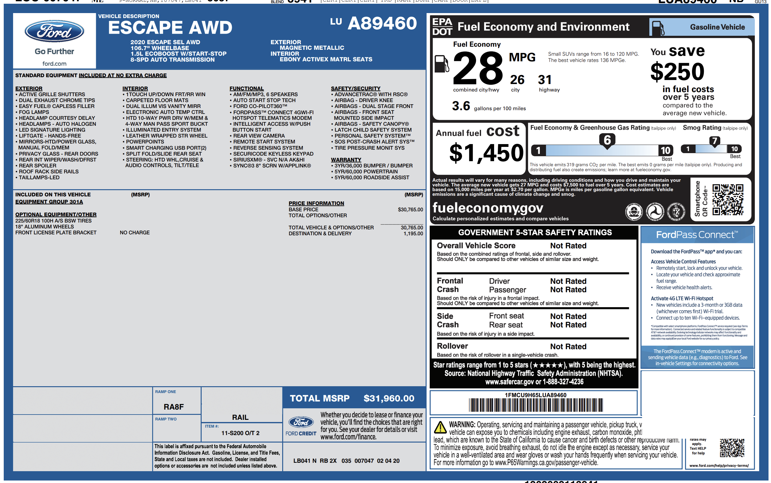 2020 Ford Escape SEL AWD with only 41k miles. Power heated leather seats, Heated steering wheel, Carplay, Power liftgate, Bluetooth, Back-up camera and more. Plus this vehicle comes fully serviced with a 12 month 12,000 mile warranty, 2 keys, full tank of gas, new Maine State inspection sticker and a 30-day temp plate. Thank you for considering Maine Street Auto!!!