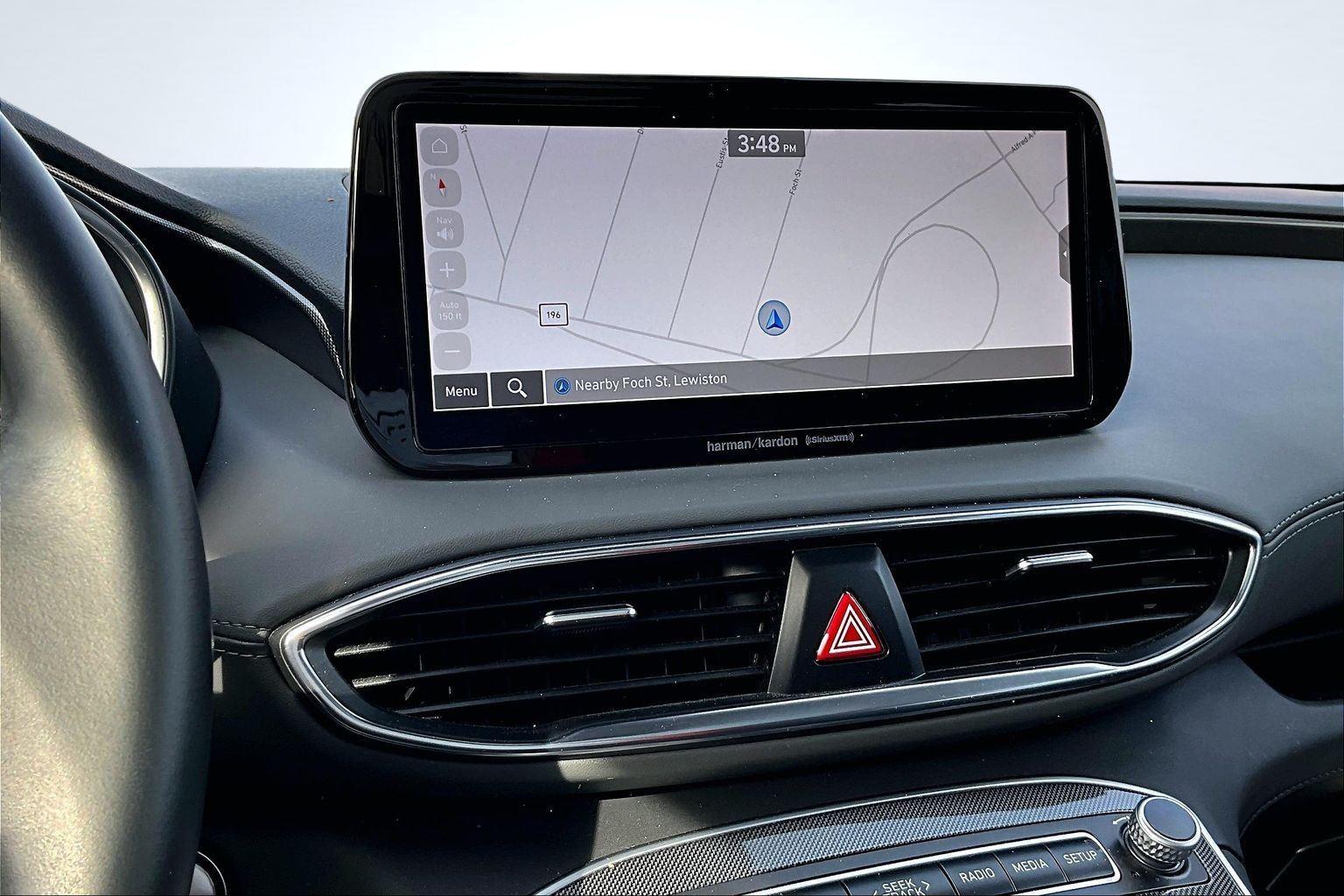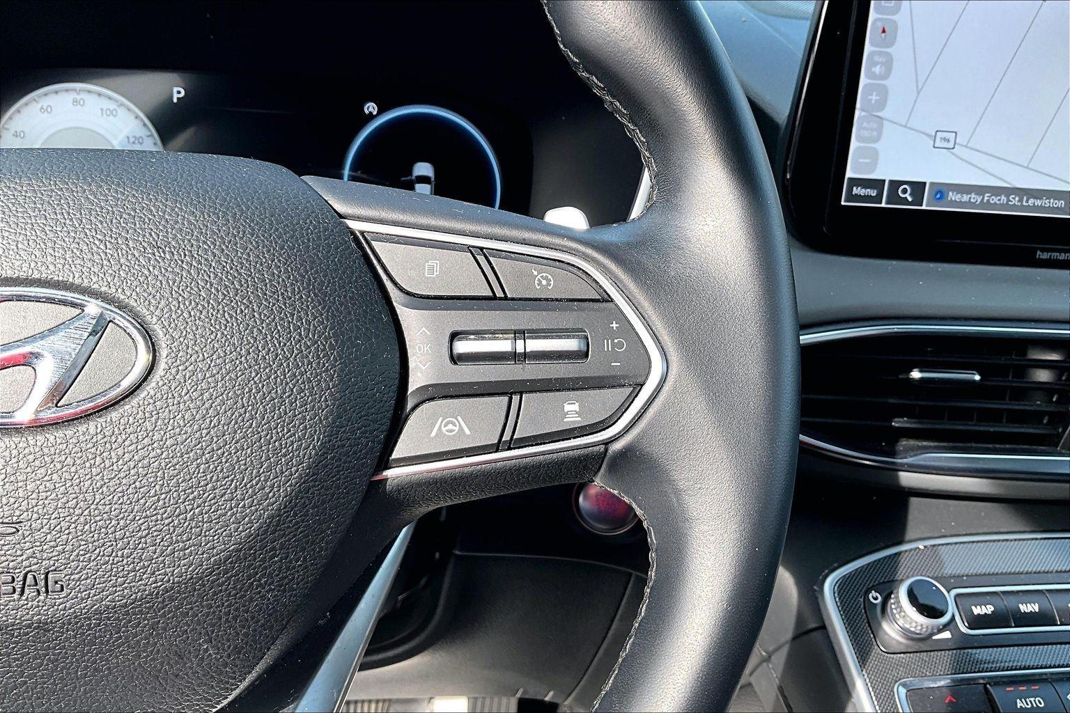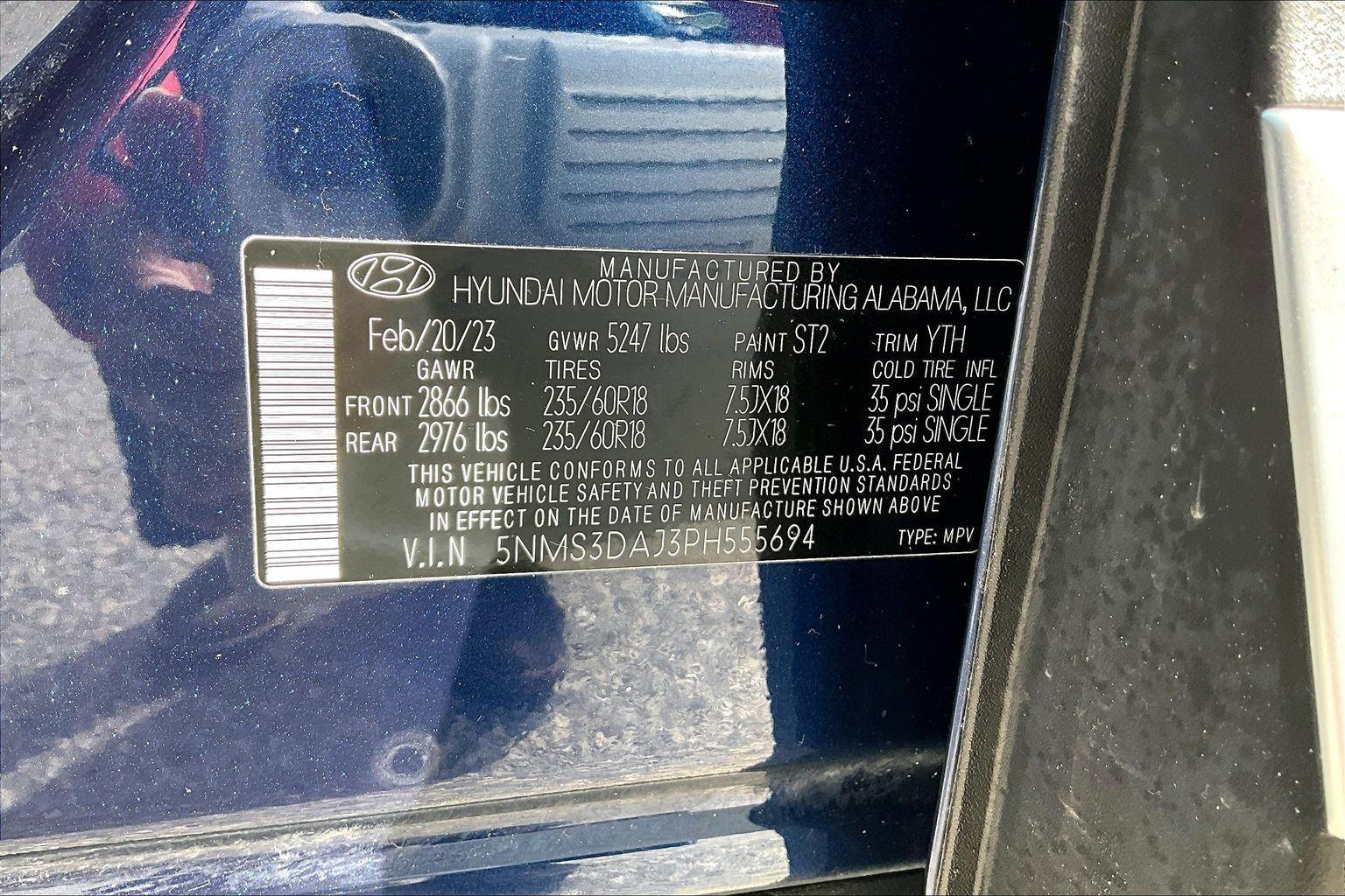 FRESH ARRIVAL CALL FOR RELEASE DATE!nnThis 2023 Hyundai Santa Fe SEL offered in Stormy Sea will make a great addition to your family or business! Here are just a few features this vehicle has to offer:nCargo Package ($205 value)Cargo NetCargo TrayFirst Aid KitPremium Package ($4,650 value)8-Way Power Passenger SeatAuto-Dimming Rearview MirrorBlind-Spot View MonitorChrome Front and Rear Bumper AccentsChrome Interior AccentsAcoustic-Laminated Front Side WindowsSilver Front GrilleHarman Kardon Audio System12.3 LCD Multi-Information DisplayLED Interior LightsManual Rear Side SunshadesH-Tex Leatherette Seat TrimPower Release 2nd Row SeatsPanoramic SunroofSurround View MonitorLED TaillightsnConvenience GPS linked cruise control - Set it and forget it. Road trips used to be stressful, until GPS linked cruise control set the pace. Simply set the desired speed and the system uses GPS navigation data to maintain that speed without driver intervention - including slowing down for curves and anticipating hills. This can help minimize driver fatigue and improve overall fuel economy. Meet your ultimate co-pilot; GPS linked cruise control.Safety and Security Hands-on cruise control. Set it and forget it. Road trips used to be stressful. Cruise control only managed speed, but not distance or safety. Now, with hands-on cruise control, simply set your desired speed and let sensor technology maintain a safe distance between you and surrounding vehicles. It slows you down; speeds you up and even keeps you in your own lane. Meet your ultimate co-pilot with hands-on cruise control. Pedestrian impact prevention - An extra step toward safety. Pedestrians don't always stop, look, and listen, but with Pedestrian Impact Prevention, your vehicle is equipped to better see them and avoid them. This system constantly monitors the road ahead to identify and track pedestrians. It projects that image to an interior display screen, AND should an impact become likely, Pedestrian impact prevention takes steps to avoid a collision.Technology and Telematics Smart device mirroring - Smartphone, meet smart car. You can control your device through your vehicle's infotainment system. Smart device mirroring brings together safety and convenience by making it easier to find what you're looking for while keeping your eyes on the road. This vehicle comes with a 60-day, 2500 mile 100% warranty that covers not only the complete list of state of Maine inspection standards but also engine & drive train as well. We also offer extended warranties for an additional fee. nnPlease call 207-333-3558 and speak with Eric for further details or email us at sales@lakecityexports.com. nnAlso ask us about our AMAZING NEW GAP program! Buy Gap Coverage through us and if your vehicle becomes a total loss, we will give you $1000 towards the purchase of a new vehicle here at Lake City Exports! DISCLAIMER: Vehicle may or may not have equipment/options listed due to the fact that it is computer generated when VIN # is entered into the system and is listed with ALL options available within that package but this does not actually mean this vehicle may be equipped with it.