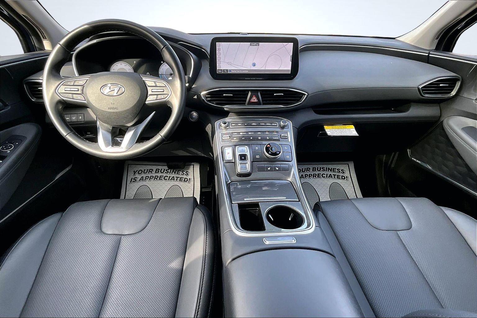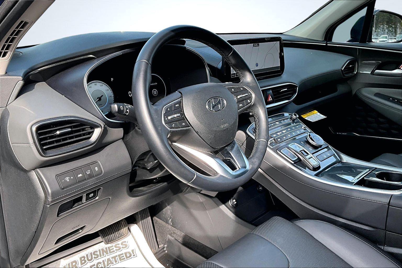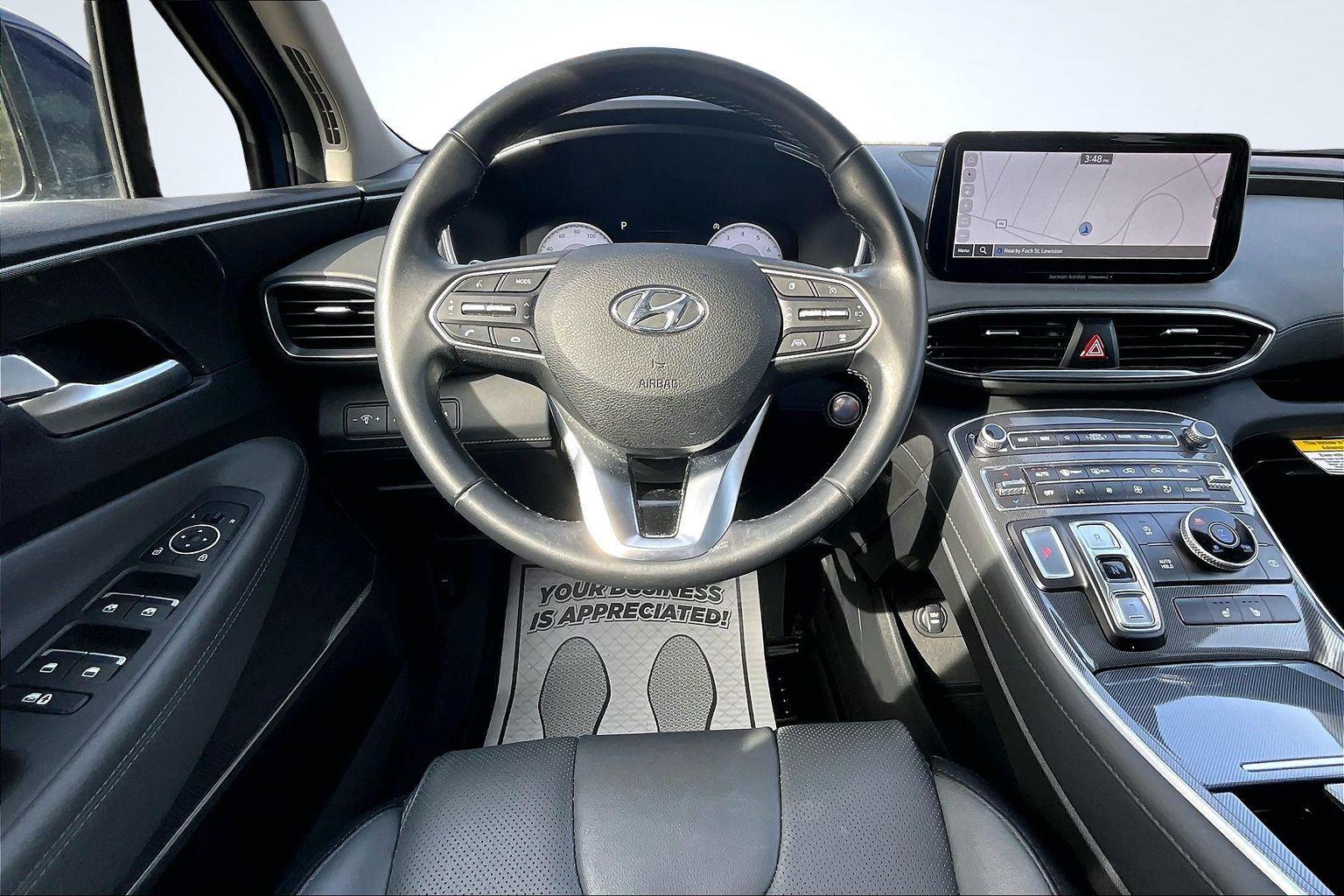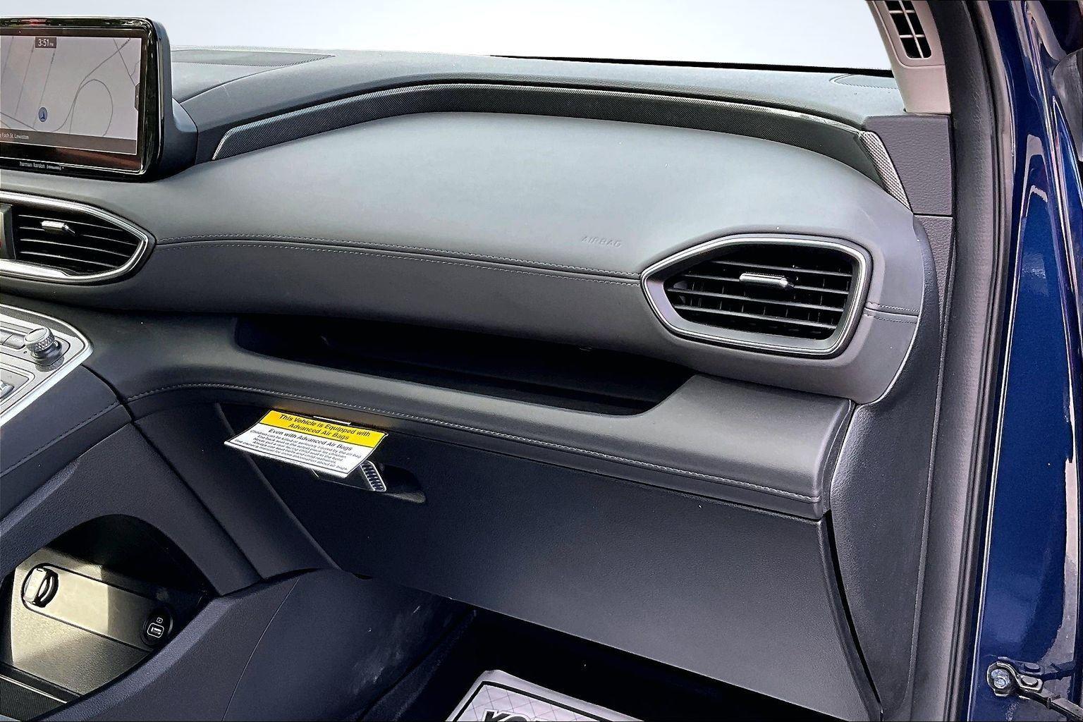 FRESH ARRIVAL CALL FOR RELEASE DATE!nnThis 2023 Hyundai Santa Fe SEL offered in Stormy Sea will make a great addition to your family or business! Here are just a few features this vehicle has to offer:nCargo Package ($205 value)Cargo NetCargo TrayFirst Aid KitPremium Package ($4,650 value)8-Way Power Passenger SeatAuto-Dimming Rearview MirrorBlind-Spot View MonitorChrome Front and Rear Bumper AccentsChrome Interior AccentsAcoustic-Laminated Front Side WindowsSilver Front GrilleHarman Kardon Audio System12.3 LCD Multi-Information DisplayLED Interior LightsManual Rear Side SunshadesH-Tex Leatherette Seat TrimPower Release 2nd Row SeatsPanoramic SunroofSurround View MonitorLED TaillightsnConvenience GPS linked cruise control - Set it and forget it. Road trips used to be stressful, until GPS linked cruise control set the pace. Simply set the desired speed and the system uses GPS navigation data to maintain that speed without driver intervention - including slowing down for curves and anticipating hills. This can help minimize driver fatigue and improve overall fuel economy. Meet your ultimate co-pilot; GPS linked cruise control.Safety and Security Hands-on cruise control. Set it and forget it. Road trips used to be stressful. Cruise control only managed speed, but not distance or safety. Now, with hands-on cruise control, simply set your desired speed and let sensor technology maintain a safe distance between you and surrounding vehicles. It slows you down; speeds you up and even keeps you in your own lane. Meet your ultimate co-pilot with hands-on cruise control. Pedestrian impact prevention - An extra step toward safety. Pedestrians don't always stop, look, and listen, but with Pedestrian Impact Prevention, your vehicle is equipped to better see them and avoid them. This system constantly monitors the road ahead to identify and track pedestrians. It projects that image to an interior display screen, AND should an impact become likely, Pedestrian impact prevention takes steps to avoid a collision.Technology and Telematics Smart device mirroring - Smartphone, meet smart car. You can control your device through your vehicle's infotainment system. Smart device mirroring brings together safety and convenience by making it easier to find what you're looking for while keeping your eyes on the road. This vehicle comes with a 60-day, 2500 mile 100% warranty that covers not only the complete list of state of Maine inspection standards but also engine & drive train as well. We also offer extended warranties for an additional fee. nnPlease call 207-333-3558 and speak with Eric for further details or email us at sales@lakecityexports.com. nnAlso ask us about our AMAZING NEW GAP program! Buy Gap Coverage through us and if your vehicle becomes a total loss, we will give you $1000 towards the purchase of a new vehicle here at Lake City Exports! DISCLAIMER: Vehicle may or may not have equipment/options listed due to the fact that it is computer generated when VIN # is entered into the system and is listed with ALL options available within that package but this does not actually mean this vehicle may be equipped with it.