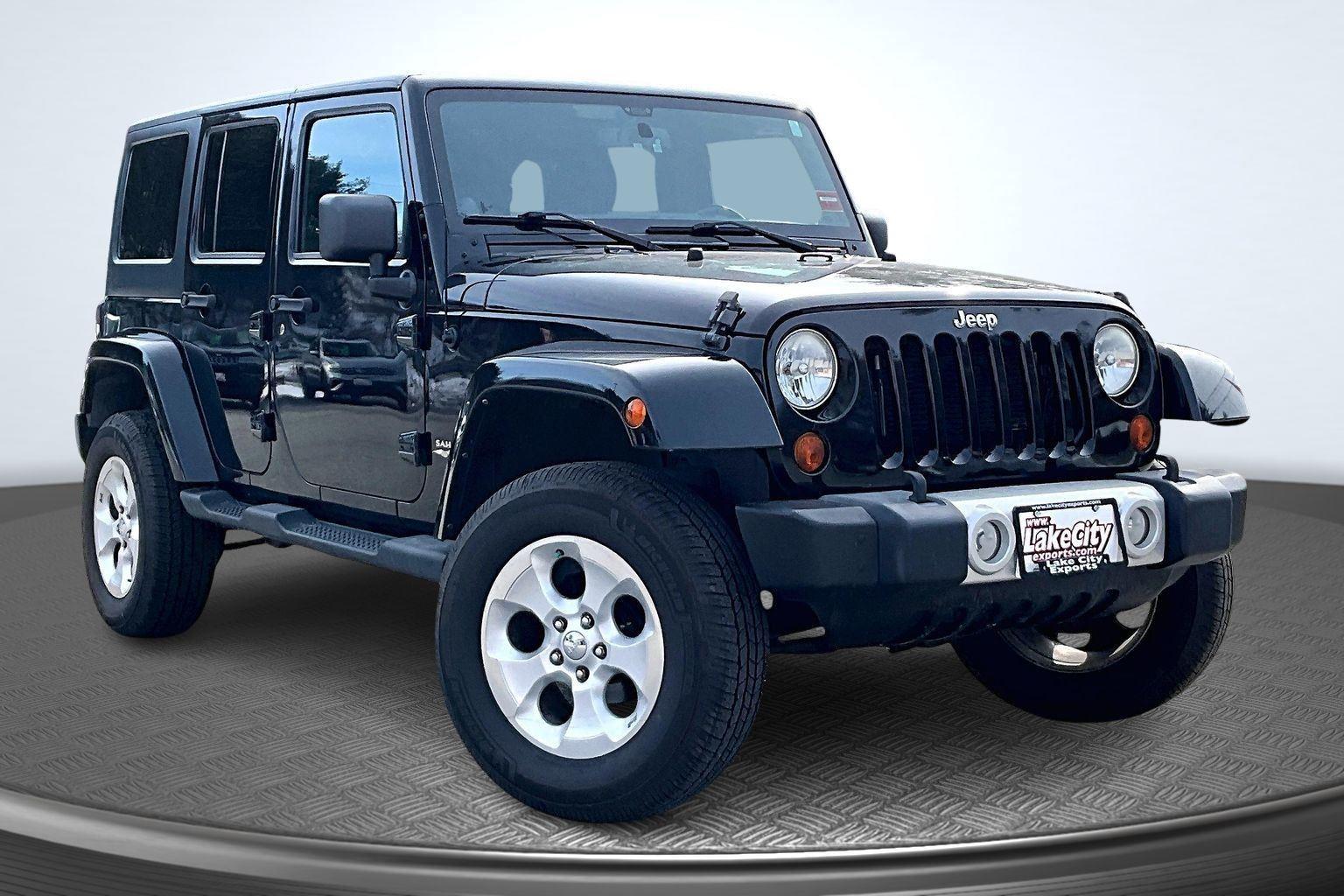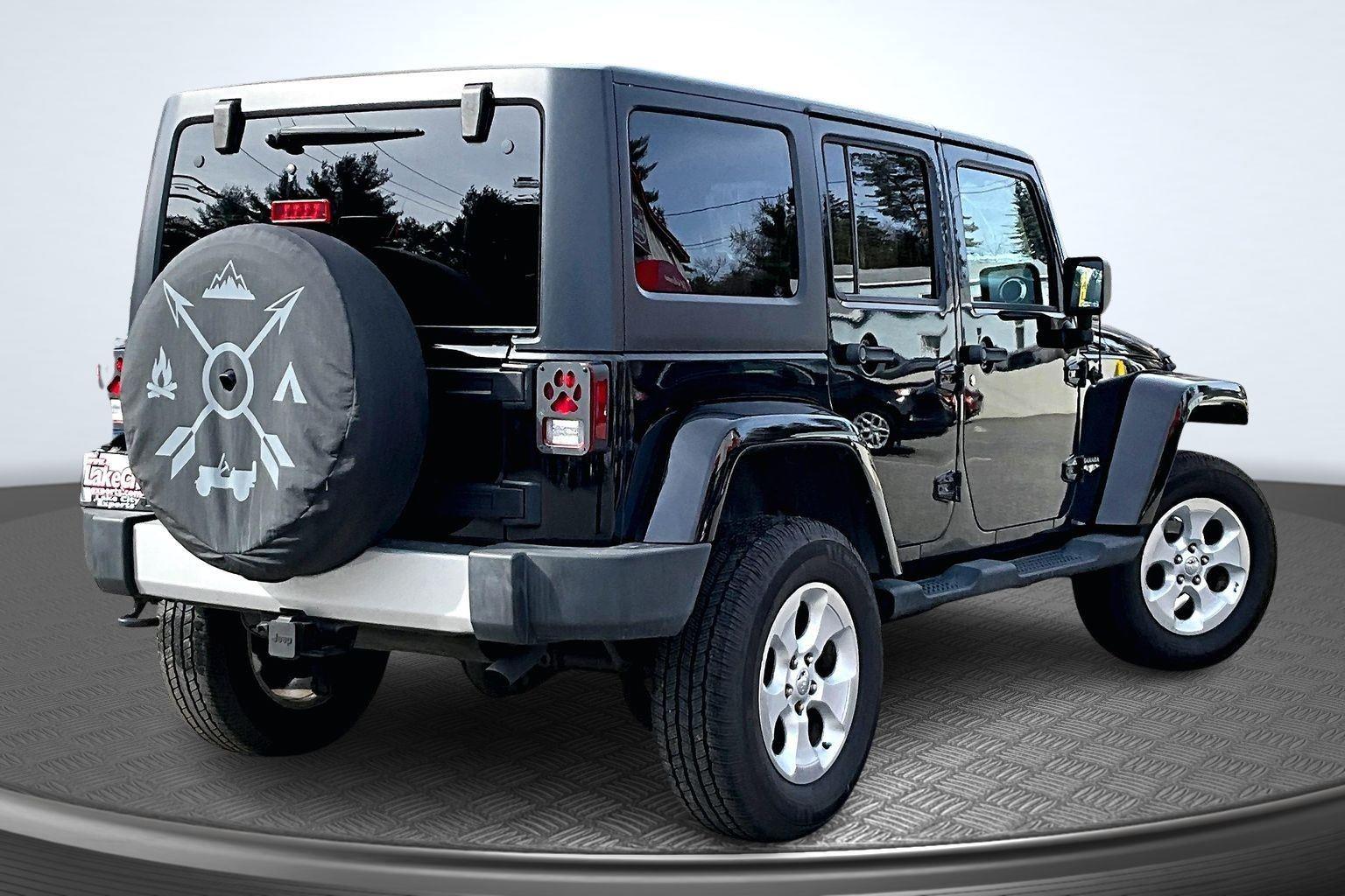 FRESH ARRIVAL CALL FOR RELEASE DATE!nnThis 2013 Jeep Wrangler Unlimited Sahara offered in Black will make a great addition to your family or business! Here are just a few features this vehicle has to offer:n Quick Order Package 24GConnectivity Group ($170 value)Vehicle Information CenterTire Pressure Monitoring DisplayDual Top Group ($2,185 value)Black 3-Piece Hard TopPremium Black Sunrider Soft TopQuick Order Package 24GConnectivity Group ($495 value)Vehicle Information CenterUconnect Voice Command with BluetoothRemote USB PortTire Pressure Monitoring DisplayDual Top Group ($2,185 value)Premium Black Sunrider Soft TopnnComfort Cloth upholstery is comfortable in all seasons. 6-way driver seat - It doesn't matter how long your drive is; if you aren't comfortable while you're behind the wheel, every trip feels like a chore. With a 6-way driver seat, finding the perfect position is easy, so you can sit back, (or up, or a little forward), relax and enjoy the journey. Front passenger seat with 4-way directional controlsExterior and Appearance First-row sunroof - Let more of the outside in. Now you can be in the sun or gaze at the stars from the comfort of your seat, and have a more open cabin during your drive. Your first-row sunroof is a breath of fresh air.Technology and Telematics Wireless connectivity - Strike the cord. Wireless technology makes it easy to place calls without having to fumble with your phone. It integrates your device with the system inside your vehicle for hands-free access. Keep connected and keep your hands on the wheel with wireless connectivity. nThis vehicle comes with a State of Maine inspection sticker as well as a 30-day plate! nnWe also offer extended warranties for an additional fee. Please call 207-333-3558 and speak with Eric for further details or email us at sales@lakecityexports.com. nnAlso ask us about our AMAZING NEW GAP program! Buy Gap Coverage through us and if your vehicle becomes a total loss, we will give you $1000 towards the purchase of a new vehicle here at Lake City Exports! nnDISCLAIMER: Vehicle may or may not have equipment/options listed due to the fact that it is computer generated when VIN # is entered into the system and is listed with ALL options available within that package but this does not actually mean this vehicle may be equipped with it.