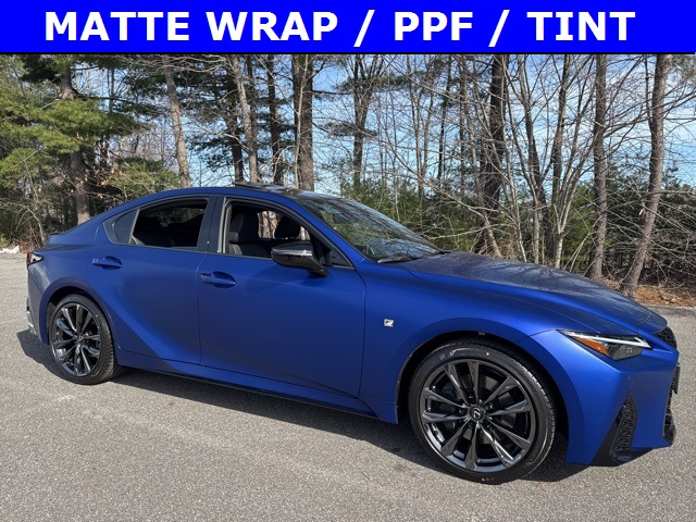 MATTE BLUE WRAP, PAINT PROTECTION FILM ON THE ENTIRE VEHICLE, BLACK GLOSS WRAP ON ROOF, CERAMIC COATING, WINDOW TINT $6888 TOTAL ACCESSORY ADD ON. (WAS $9995!) THIS IS A ONE OF A KIND VEHICLE! SELLING AT IINVOICE AND BELOW ACCESSORY COSTS! FIRST PAYMENT DUE AT SIGNING, 10K MILES PER YEAR 36 MONTH LEASE FOR $769 A MONTH OR PURCHASE WITH $0 DOWN FOR 72 MONTHS AT 5.49% FOR $999 A MONTH! MAINE TAXES AND FEES INCLUDED!, IS 350 F SPORT AWD, 4D Sedan, 3.5L V6 DOHC Dual VVT-i 24V, 6-Speed Automatic, AWD, Ultrasonic Blue 2.0, Black w/ Black Geometric Trim w/F SPORT NuLuxe Seat Trim, Remote keyless entry. 350 F SPORT AWD AWD 6-Speed Automatic 3.5L V6 DOHC Dual VVT-i 24V Ultrasonic Blue 2.0 19/26 City/Highway MPGThis vehicle is located exclusively at Berlin City Lexus. We offer the ability to purchase 100% online, FaceTime virtual appointments and home delivery anywhere in New England. We work with all types of credit levels and different financial situations. Quoted price subject to change without notice to correct errors or omissions. All figures are estimates only and are not guaranteed as accurate. Dealer document processing charge of $799 is not included in quoted price. Sales tax or other taxes, tag, title, registration fees, and government fees are not included in quoted price. Taxes due are from the state you reside in. All vehicles subject to prior sale. Ask for Lexus Sales at 207-321-3477 for more information or to setup an appointment.