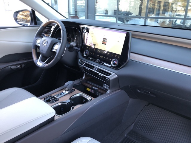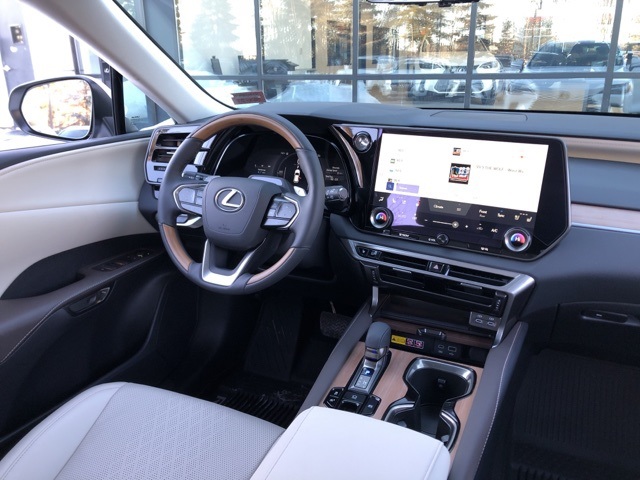 PREMIUM+ PACKAGE, ALL WHEEL DRIVE / 4X4, APPLE CARPLAY/ANDROID AUTO, BLUETOOTH, BACK UP CAMERA, PANORAMIC MOONROOF, LEATHER, RX 350h Premium+ AWD, 4D Sport Utility, 2.5L I4 DOHC 16V, Continuously Variable (ECVT), AWD, Eminent White Pearl, Macadamia w/Ash Bamboo w/ Leather-Trimmed Seat Trim, 10" Color Head-Up Display, 120V/1,500-Watt AC Power Outlet, ABS brakes, Alloy wheels, Compass, Digital Key, Digital Rearview Mirror, Electronic Stability Control, Front dual zone A/C, Front fog lights, Heated and Ventilated Front Bucket Seats, Heated door mirrors, Illuminated entry, Lexus Interface with 14" Touchscreen Display, Lexus Multimedia Screen Protector, Navigation System, Panorama Glass Roof and Roof Rails, Power Rear Door with Kick Sensor, Premium Paint, Premium+ Grade, Radio: 12-Speaker Lexus Premium Sound System, Remote keyless entry, Technology Package, Traction control. 350h Premium+ AWD AWD Continuously Variable (ECVT) 2.5L I4 DOHC 16V Eminent White Pearl 37/34 City/Highway MPG
