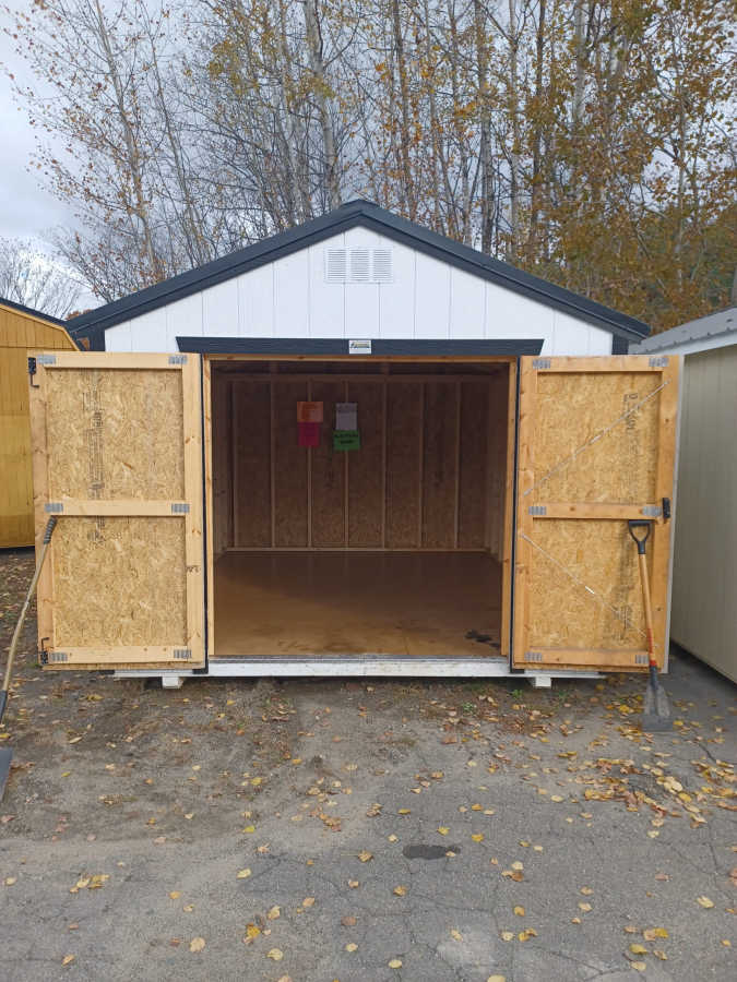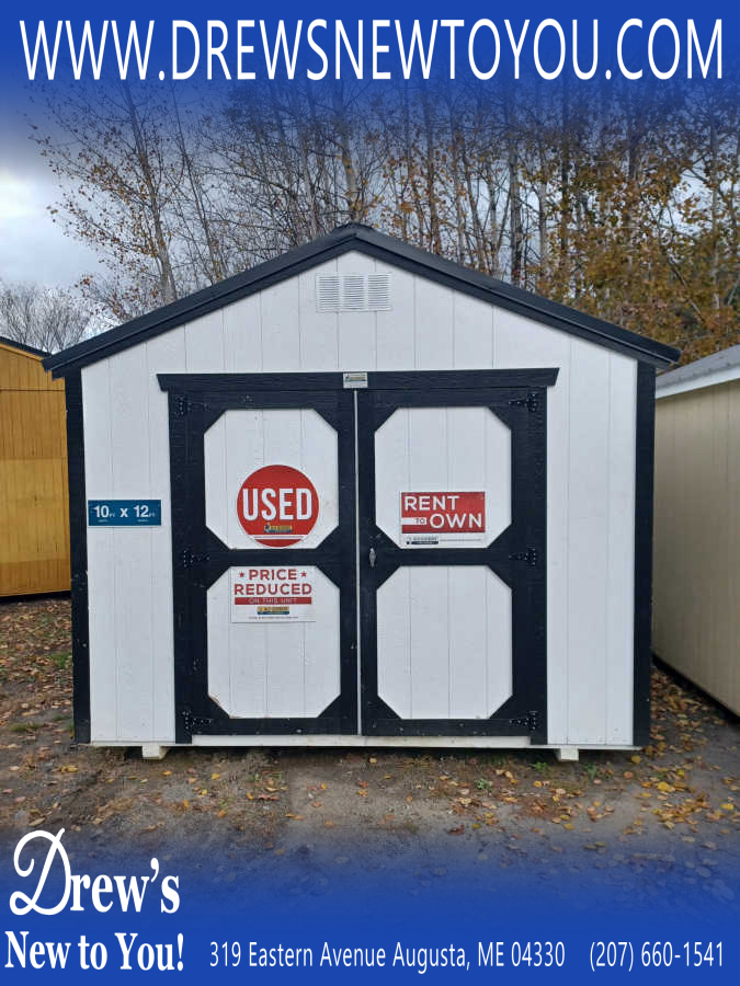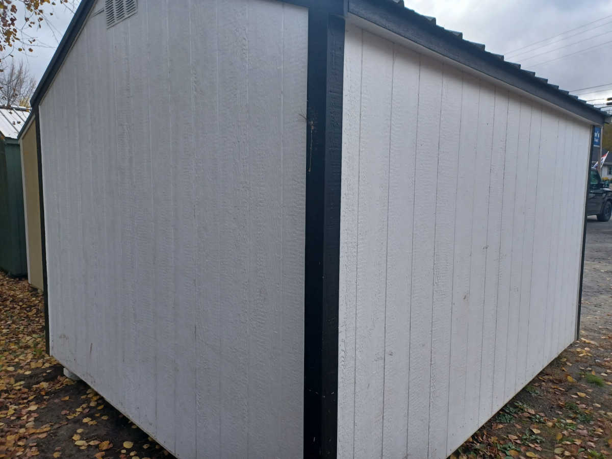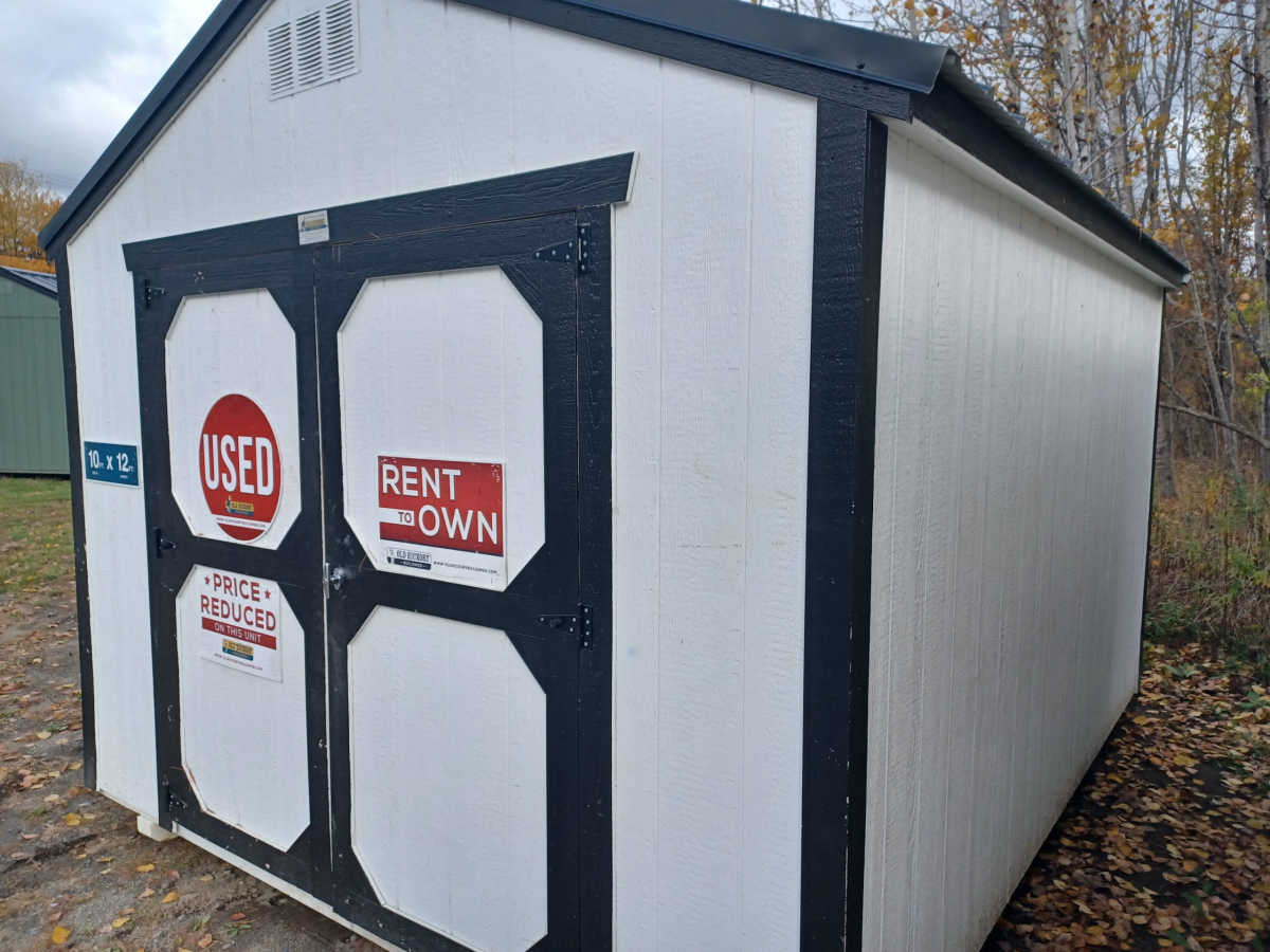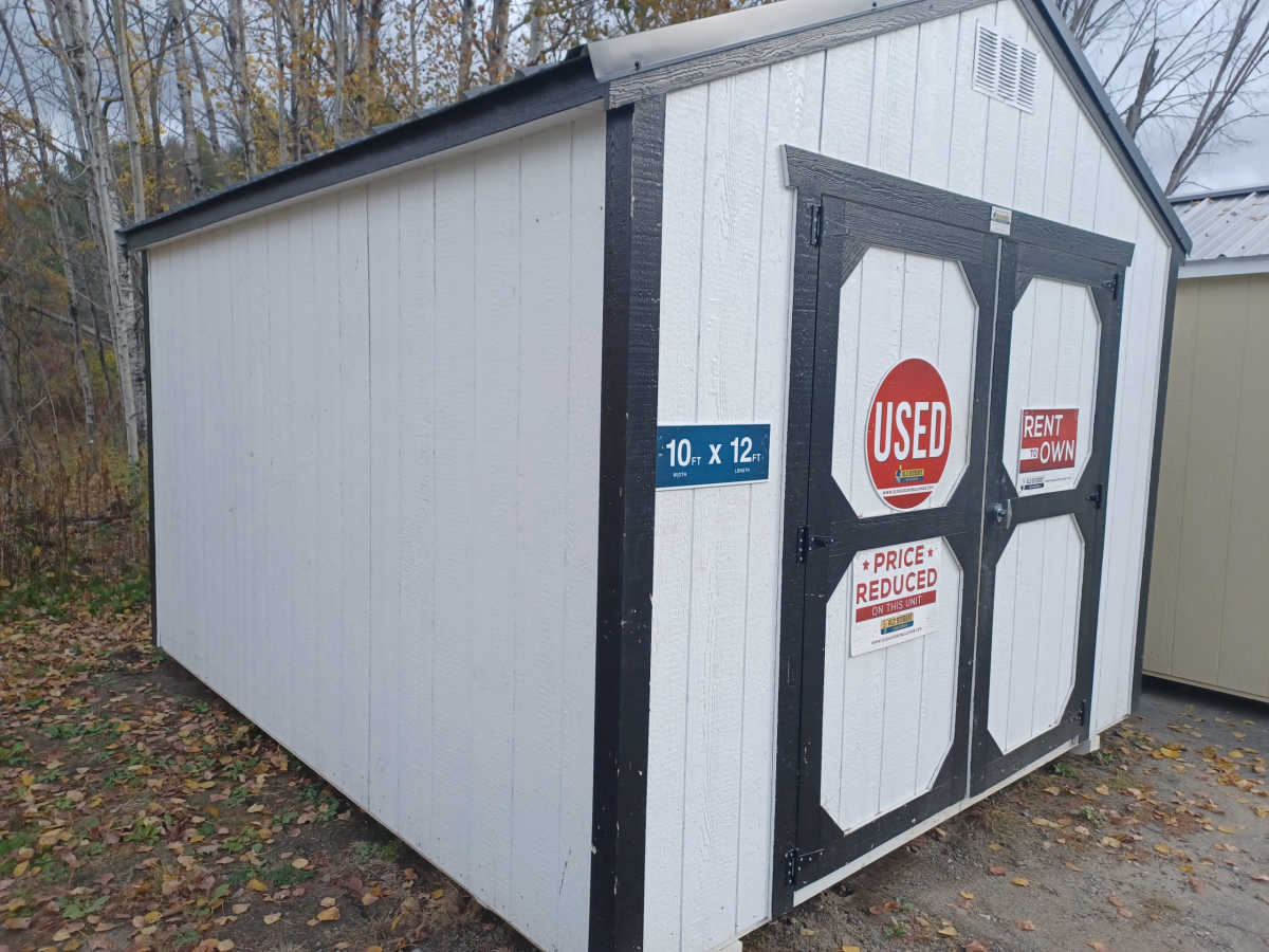 Used 10x12 Utility shed with metal roof, smart panel exterior, engineered flooring, and diamond plate threshold.