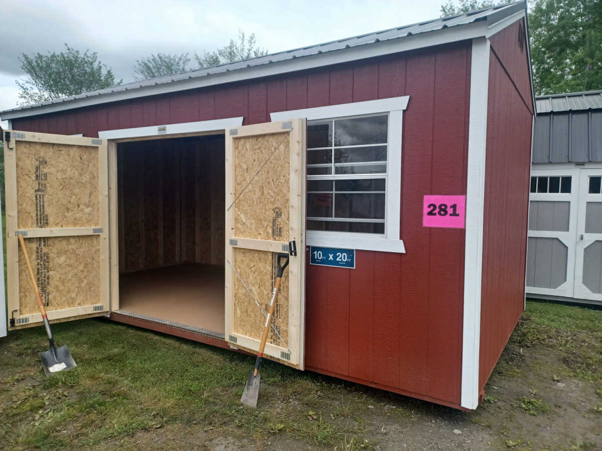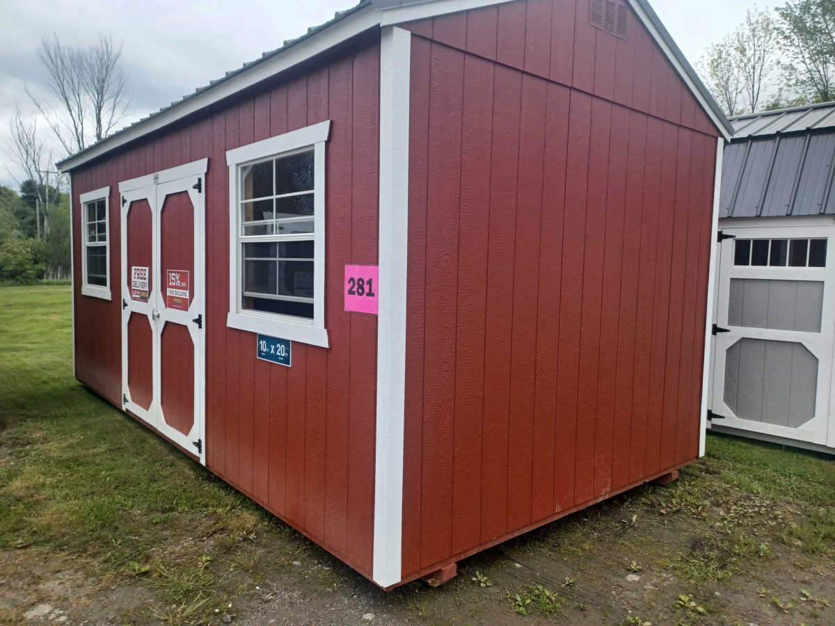 New 10x20 Utility Shed with metal roof, 8' walls, smart panel siding, 2 3'x3' windows, double doors, engineered floor and diamond plate threshold.