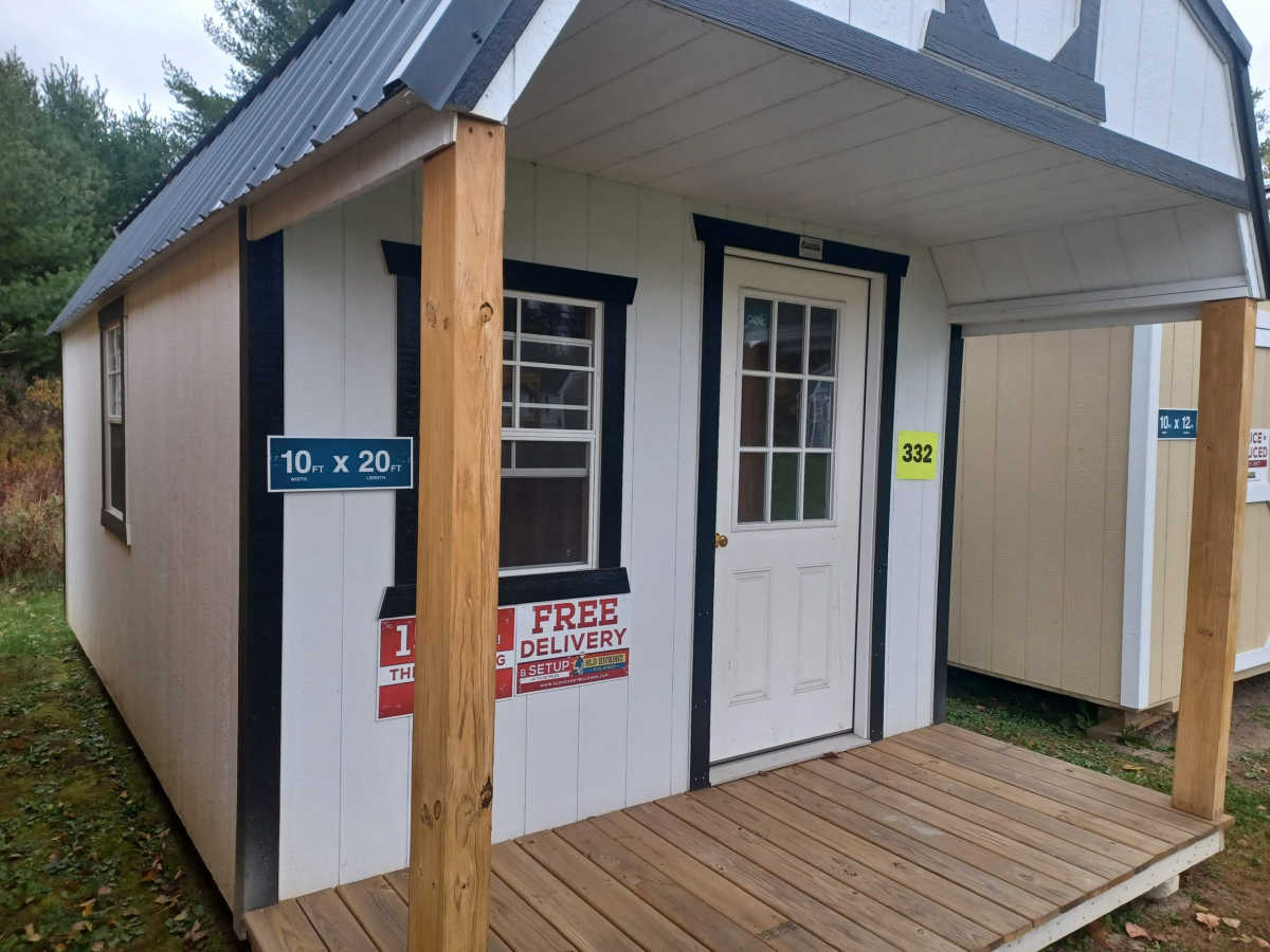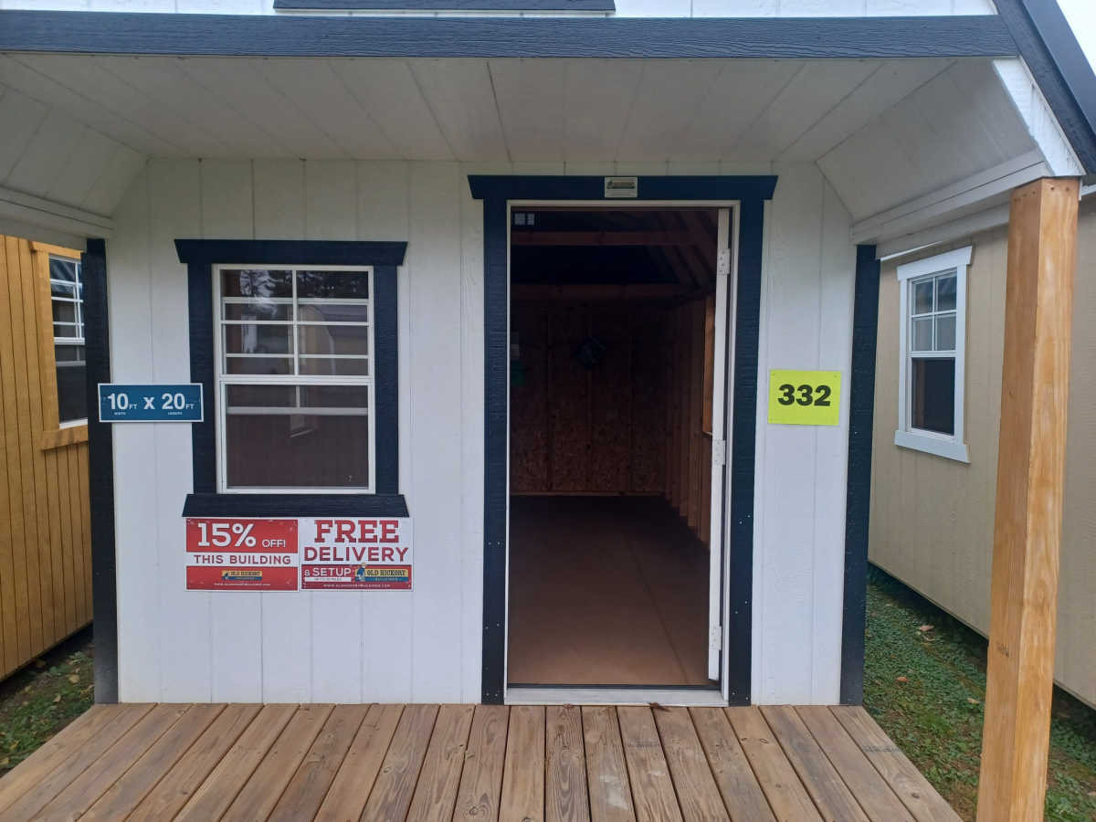 New 10x20 Lofted Barn Playhouse with metal roof, smart panel siding, 3 2ft x 3ft windows, 4ft front porch, 9 lite exterior door, engineered floor, and 4 ft loft. For over 25 years, Old Hickory Buildings has been providing customers with dependable storage solutions and a quality buying experience. Using the old fashioned, country tradition of barn building, our factories use the same traditional construction techniques and philosophies handed down from generation to generation among the many Amish and Mennonite communities. In fact, the kind of quality, care, and attention to detail that we put into every one of our barns is how we became leaders in our industry. Our overriding philosophy of quality can be seen in our company’s culture every day. From the premium materials we use to the engineer certification process, and from our highly skilled and customer friendly delivery drivers to our knowledgeable salespeople, you can be confident that you’ll get the best building for your needs at a price within your budget. Our 5/8” engineered tongue and groove flooring offers exceptional strength for a flatter, more stable floor. Free of knots and patches with thermally fused face. Advanced resins are moisture resistant. Our experienced delivery drivers provide a hassle-free, efficient delivery experience. There is no site preparation necessary if the location is no more than 3 feet out of level in any direction. Our free delivery and set up must be within 30 miles of the sales lot, over 30 miles additional charges apply, and includes leveling up to 3 feet with customer provided cement blocks and driver supplied pressure treated shims. Leveling blocks can be purchased from the driver, if needed. We offer you peace of mind – with a limited 5 – year warranty backed by a company that has been in business since 1997.