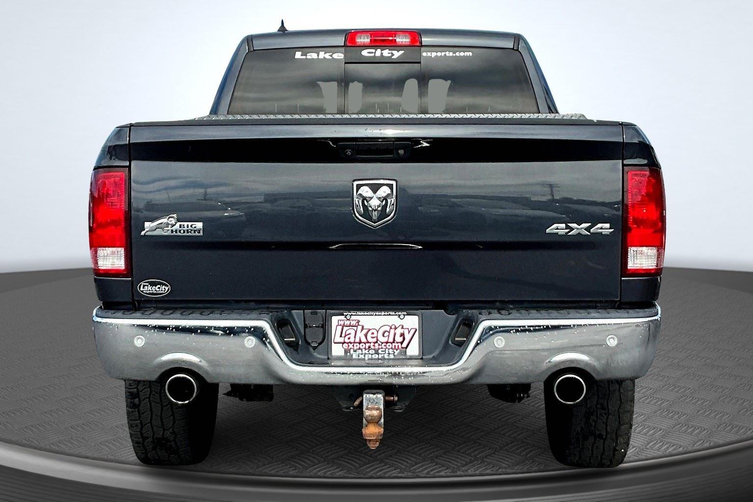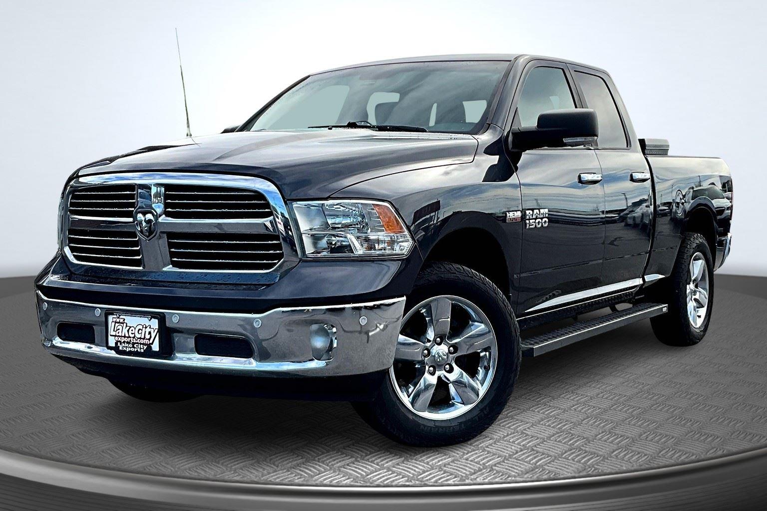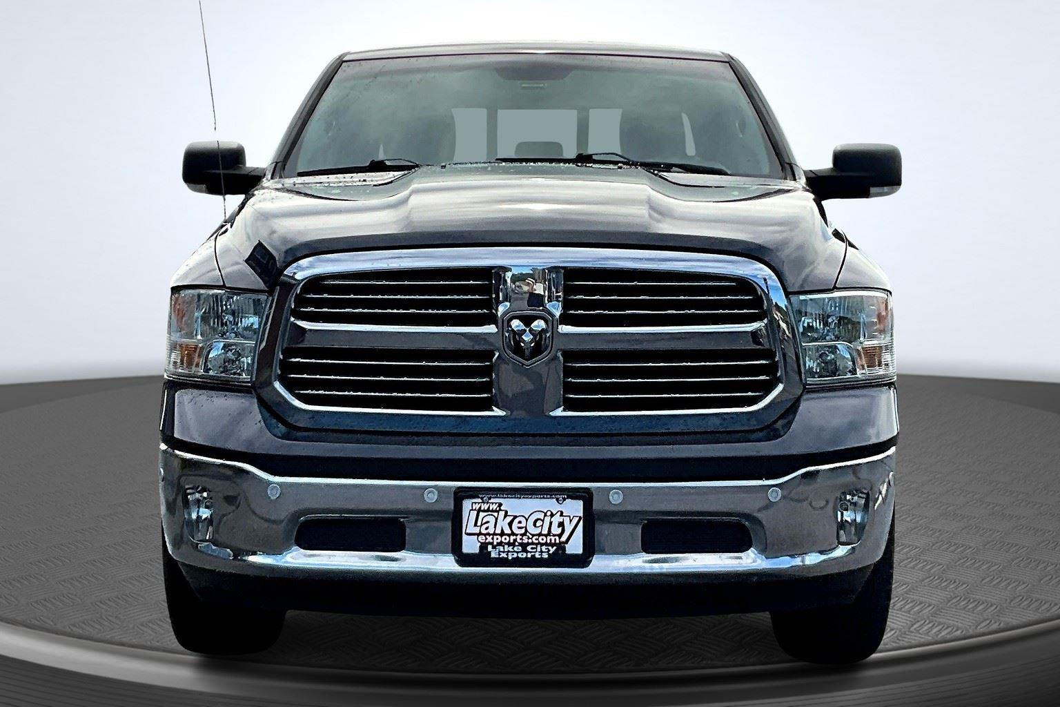 This 2018 Ram 1500 Big Horn offered in Maximum Steel Metallic Clearcoat will make a great addition to your family or business! Here are just a few features this vehicle has to offer:n Quick Order Package 27S Big Horn ($2,700 value)Big Horn Regional PackageOverhead Console with Garage Door OpenerElectric Shift on Demand Transfer CaseSun Visors with Illuminated Vanity MirrorsRear View Auto Dim MirrorAuto Dim Exterior MirrorsPower Heated Fold-Away MirrorsElectroluminescent Instrument ClusterGlove Box LampExterior Mirrors with Supplemental SignalsExterior Mirrors Courtesy LampsPower-Folding MirrorsRear Dome with On/off Switch LampFront Fog LampsLED Bed LightingSecurity AlarmPremium Cloth 40/20/40 Bench SeatBright/bright Billets GrilleBig Horn BadgeDual Rear Exhaust with Bright TipsSteering Wheel Mounted Audio ControlsLeather Wrapped Steering WheelFull Size Temporary Use Spare TireUconnect 4C Radio with 8.4 Display20 X 8 Aluminum Chrome Clad WheelsParkSense Rear Park Assist SystemRemote Start SystemClass IV Receiver HitchnComfort Premium cloth upholstery combines an elegant appearance with all-season comfort.Convenience Smart device and keyfob engine start control - Phone ahead. Remotely start your vehicle's engine from the key fob or your smart device, ensuring your ride is ready to go when you get in. Now you can stay comfortable inside while your vehicle gets comfortable outside, ,thanks to Smart device and Keyfob engine start control. Keyfob engine start control - Get an early start. Remotely start your vehicle's engine from the key fob, ensuring your ride is ready to go when you get in. Now you can stay comfortable inside while your vehicle gets comfortable outside, thanks to Keyfob engine start control.Technology and Telematics Smart device mirroring - Smartphone, meet smart car. You can control your device through your vehicle's infotainment system. Smart device mirroring brings together safety and convenience by making it easier to find what you're looking for while keeping your eyes on the road. Wireless connectivity - Strike the cord. Wireless technology makes it easy to place calls without having to fumble with your phone. It integrates your device with the system inside your vehicle for hands-free access. Keep connected and keep your hands on the wheel with wireless connectivity. nThis vehicle comes with a State of Maine inspection sticker as well as a 30-day plate! nnWe also offer extended warranties for an additional fee. Please call 207-333-3558 and speak with Eric for further details or email us at sales@lakecityexports.com. nnAlso ask us about our AMAZING NEW GAP program! Buy Gap Coverage through us and if your vehicle becomes a total loss, we will give you $1000 towards the purchase of a new vehicle here at Lake City Exports! nnDISCLAIMER: Vehicle may or may not have equipment/options listed due to the fact that it is computer generated when VIN # is entered into the system and is listed with ALL options available within that package but this does not actually mean this vehicle may be equipped with it.