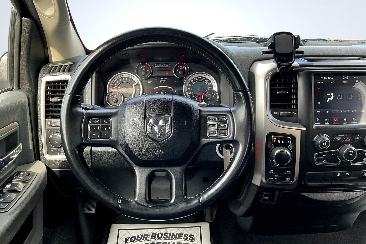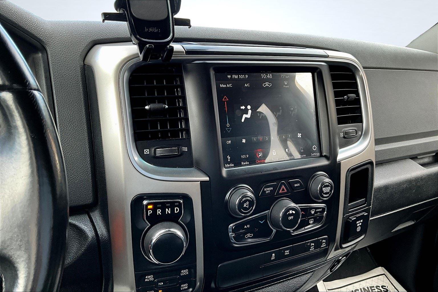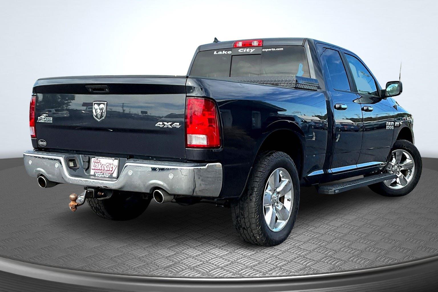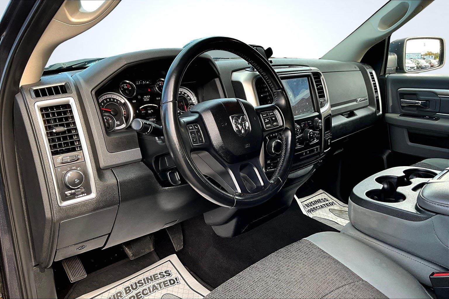 This 2018 Ram 1500 Big Horn offered in Maximum Steel Metallic Clearcoat will make a great addition to your family or business! Here are just a few features this vehicle has to offer:n Quick Order Package 27S Big Horn ($2,700 value)Big Horn Regional PackageOverhead Console with Garage Door OpenerElectric Shift on Demand Transfer CaseSun Visors with Illuminated Vanity MirrorsRear View Auto Dim MirrorAuto Dim Exterior MirrorsPower Heated Fold-Away MirrorsElectroluminescent Instrument ClusterGlove Box LampExterior Mirrors with Supplemental SignalsExterior Mirrors Courtesy LampsPower-Folding MirrorsRear Dome with On/off Switch LampFront Fog LampsLED Bed LightingSecurity AlarmPremium Cloth 40/20/40 Bench SeatBright/bright Billets GrilleBig Horn BadgeDual Rear Exhaust with Bright TipsSteering Wheel Mounted Audio ControlsLeather Wrapped Steering WheelFull Size Temporary Use Spare TireUconnect 4C Radio with 8.4 Display20 X 8 Aluminum Chrome Clad WheelsParkSense Rear Park Assist SystemRemote Start SystemClass IV Receiver HitchnComfort Premium cloth upholstery combines an elegant appearance with all-season comfort.Convenience Smart device and keyfob engine start control - Phone ahead. Remotely start your vehicle's engine from the key fob or your smart device, ensuring your ride is ready to go when you get in. Now you can stay comfortable inside while your vehicle gets comfortable outside, ,thanks to Smart device and Keyfob engine start control. Keyfob engine start control - Get an early start. Remotely start your vehicle's engine from the key fob, ensuring your ride is ready to go when you get in. Now you can stay comfortable inside while your vehicle gets comfortable outside, thanks to Keyfob engine start control.Technology and Telematics Smart device mirroring - Smartphone, meet smart car. You can control your device through your vehicle's infotainment system. Smart device mirroring brings together safety and convenience by making it easier to find what you're looking for while keeping your eyes on the road. Wireless connectivity - Strike the cord. Wireless technology makes it easy to place calls without having to fumble with your phone. It integrates your device with the system inside your vehicle for hands-free access. Keep connected and keep your hands on the wheel with wireless connectivity. nThis vehicle comes with a State of Maine inspection sticker as well as a 30-day plate! nnWe also offer extended warranties for an additional fee. Please call 207-333-3558 and speak with Eric for further details or email us at sales@lakecityexports.com. nnAlso ask us about our AMAZING NEW GAP program! Buy Gap Coverage through us and if your vehicle becomes a total loss, we will give you $1000 towards the purchase of a new vehicle here at Lake City Exports! nnDISCLAIMER: Vehicle may or may not have equipment/options listed due to the fact that it is computer generated when VIN # is entered into the system and is listed with ALL options available within that package but this does not actually mean this vehicle may be equipped with it.