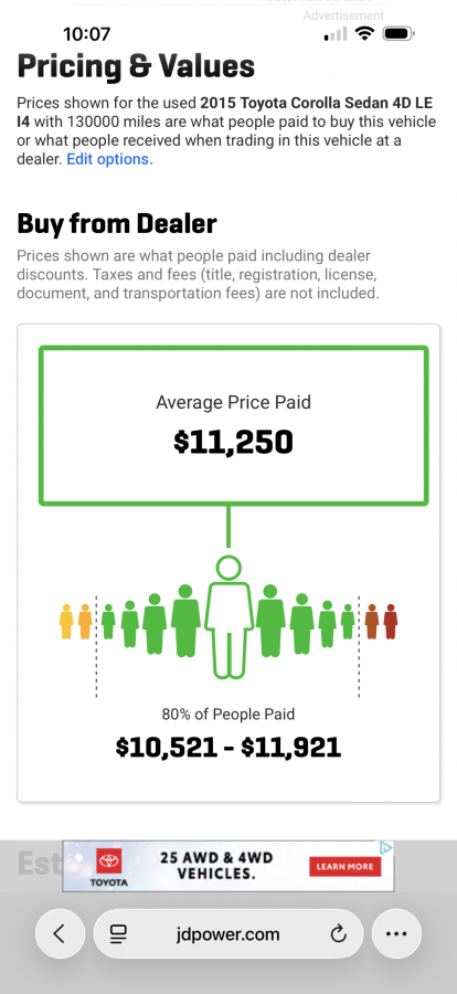 15 Toyota Corolla le 4 cylinder automatic front wheel drive with 130K. Runs and drives great, needs nothing. New inspection, 30 day plate and 30 day warranty. 7500 plus tax and title. No in house financing.