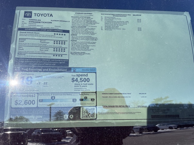 03u5 2026 Toyota Tundra Platinum 4WD 10-Speed Automatic 3.4L V6 Price includes: $3000 - TMS Customer Cash . Exp. 02/02/2026