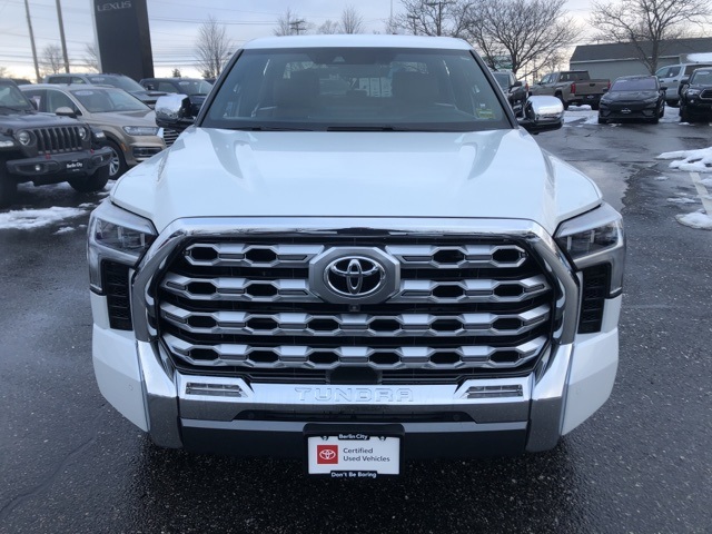 CARFAX One-Owner. 3.4L V6 10-Speed Automatic 4WD Wind Chill Pearl ONE OWNER, CLEAN CARFAX/NO ACCIDENTS REPORTED, RECENT TRADE IN, BLUETOOTH, BACK UP CAMERA, 4X4, SPECIAL COLOR, PVM + BSM OUTER MIRRORS (1794 CHROME), Tundra 1794 4WD, 4D CrewMax, 3.4L V6, 10-Speed Automatic, 4WD, Wind Chill Pearl, Saddle Tan w/Leather Seat Trim, 12 Speakers, 1794 Grade Package, Apple CarPlay/Android Auto, Bed Mat (TMS), Front fog lights, Heated door mirrors, Heated front seats, Paint Protection Film (TMS), Power moonroof, Radio: Audio Multimedia System, Remote keyless entry, Safety Connect, Stainless Steel Door Edge Guard (TMS), Ventilated front seats, Wheels: 20" Machined Finish Alloy.• At Berlin City Toyota of Portland you can buy with confidence knowing all of our certified vehicles undergo a rigorous reconditioning process and come with a 2 month/2,000 mile warranty. And if for any reason you are not fully satisfied with your purchase bring it back within 4 days or 200 miles, no questions asked. Want to save more time, we'll even deliver it to your doorstep within 24 hours. That’s how we make car buying easy. Quoted price subject to change without notice to correct errors or omissions. All figures are estimates only and are not guaranteed as accurate. Dealer document processing charge of $799 not included in quoted price. Sales tax or other taxes, tag, title, registration fees, and government fees is not included in quoted price. All vehicles subject to prior sale.